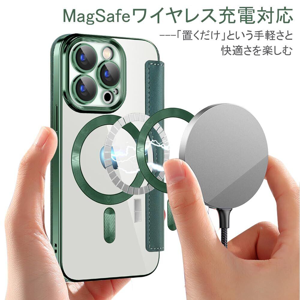 【REHOOF】iPhone 14 pro ケース 手帳型 magsafe対応 6.1インチ 背面 透明 クリア 財布型 アイフォン 14 プロ ケース マグセーフ 手帳 ワイヤレス充電対応 カード入れ PU革 レザー スマホケース 軽量 薄型 防塵 耐衝撃 全面保護 スマホカバー(グリーン)