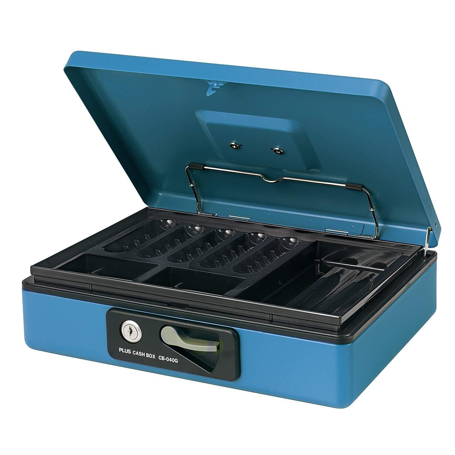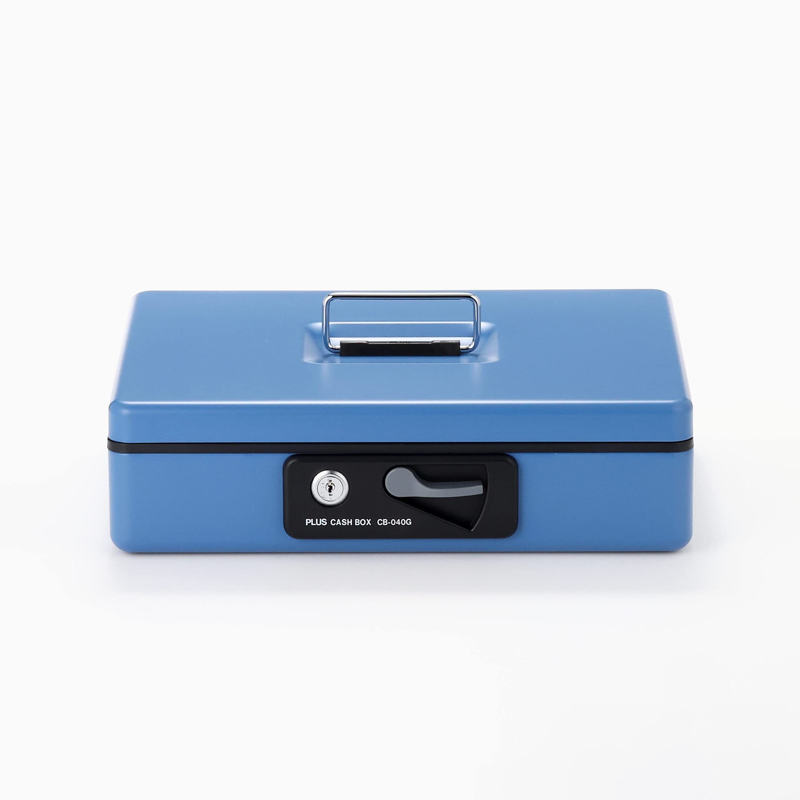 プラス 金庫 手提金庫 小型 W300×D240×80mm ブルー 13-127