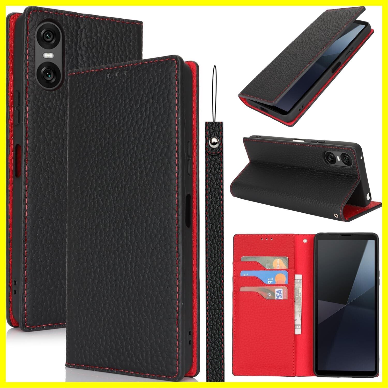 Pelanty For Sony Xperia 10 VI ケース手帳型 SO-52E SOG14 XQ-ES44 スマホケース 牛革製品 本革レザー 財布型カバー カード収納 スタンド機能 内蔵マグネット 手作り柔らかい ソニー エクスペリア10vi 第六世代 so52e 携帯カバー ストラップ付 ヘッドフォンケーブル 耐衝撃 ブラック