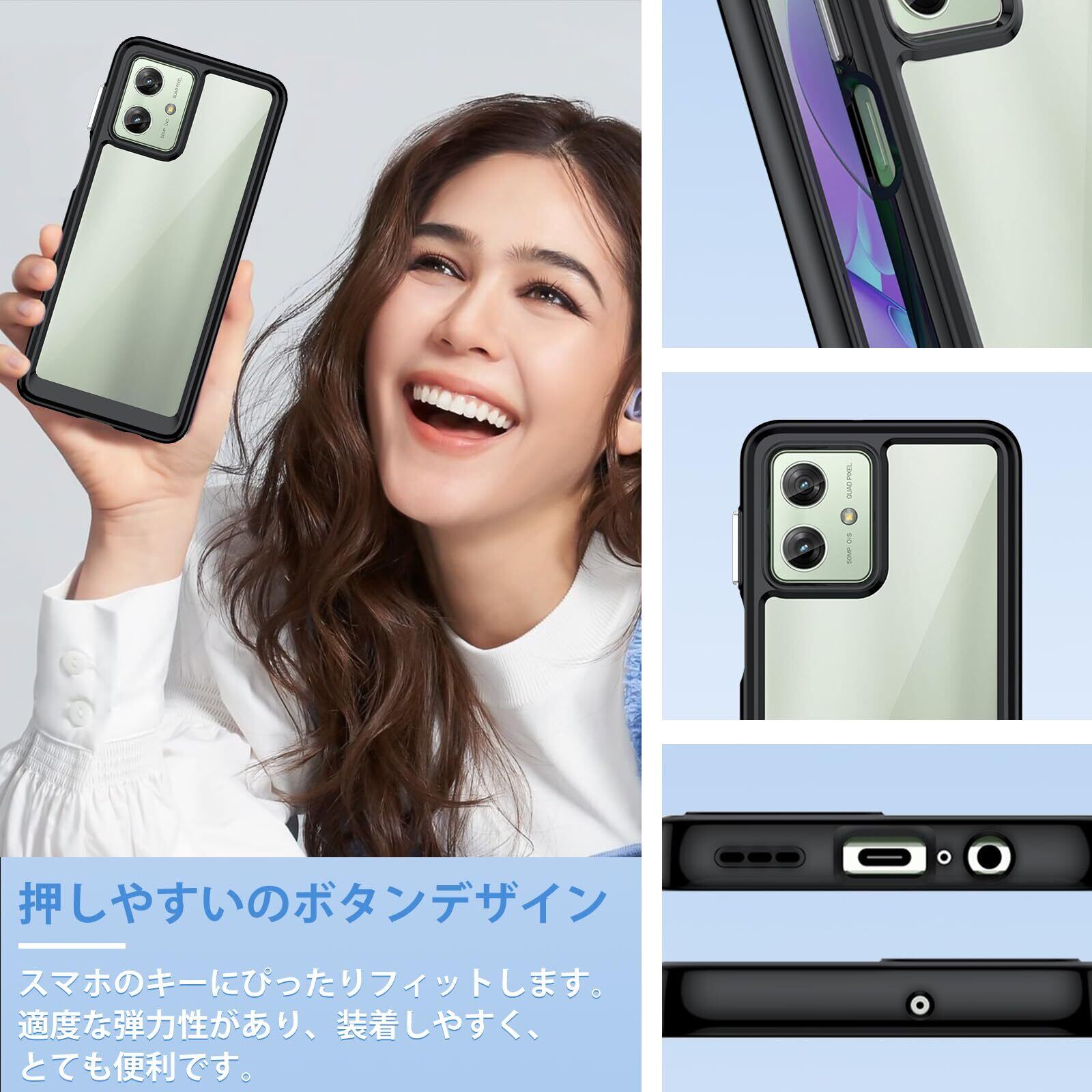 [高品質TPU+PC素材] Motorola(モトローラ) Moto G64 保護ケースのフレームはTPU素材で作られており、保護ケースの背面パネルはPC素材で作られています。耐久性に優れ、外側部分がある程度の衝撃を吸収し、側面の滑り止め設計でを防ぎます。特殊加工を施し、より透明度が高く、指紋が付きにくく黄ばみを防ぎます。適度な柔らかさと弾力があり、手に馴染みやすく滑りにくいです。硬すぎず柔らかすぎない素材なので装着しやすくしっかりと固定できます。ケースの背面は透明で透明度が高くて、ファッショナブルで独特な輝きを放ち、シンプルで高級感が溢れています。特殊な酸化防止処理により黄変しにくく、透明感を長期間維持します。