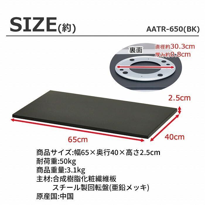 エイアイテック(AITECH) AIS TV回転台 幅65x奥行40x高さ2.5cm 360度回転 完成品 ブラック AATR-650 BK