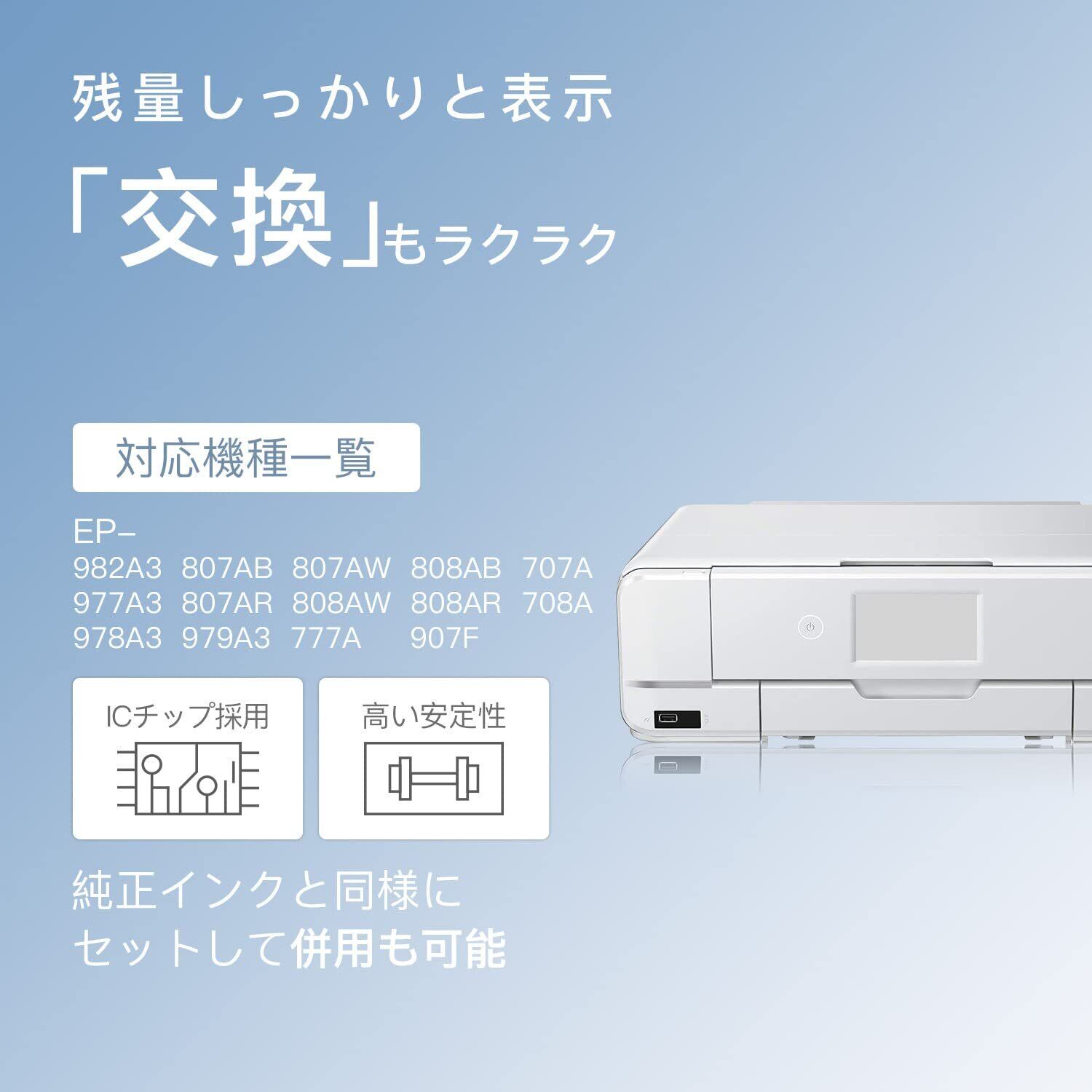 【対応機種】エプソン用 EP-982A3 EP-707A EP-708A EP-777A EP-807AB EP-807AR EP-807AW EP-808AB EP-808AR EP-808AW EP-907F EP-977A3 EP-978A3 EP-979A3 インク。※インクカートリッジをご使用になる前に、必ず説明書をご確認ください。基本的な使用方法やよくあるご質問の対処方法が記載されてます。