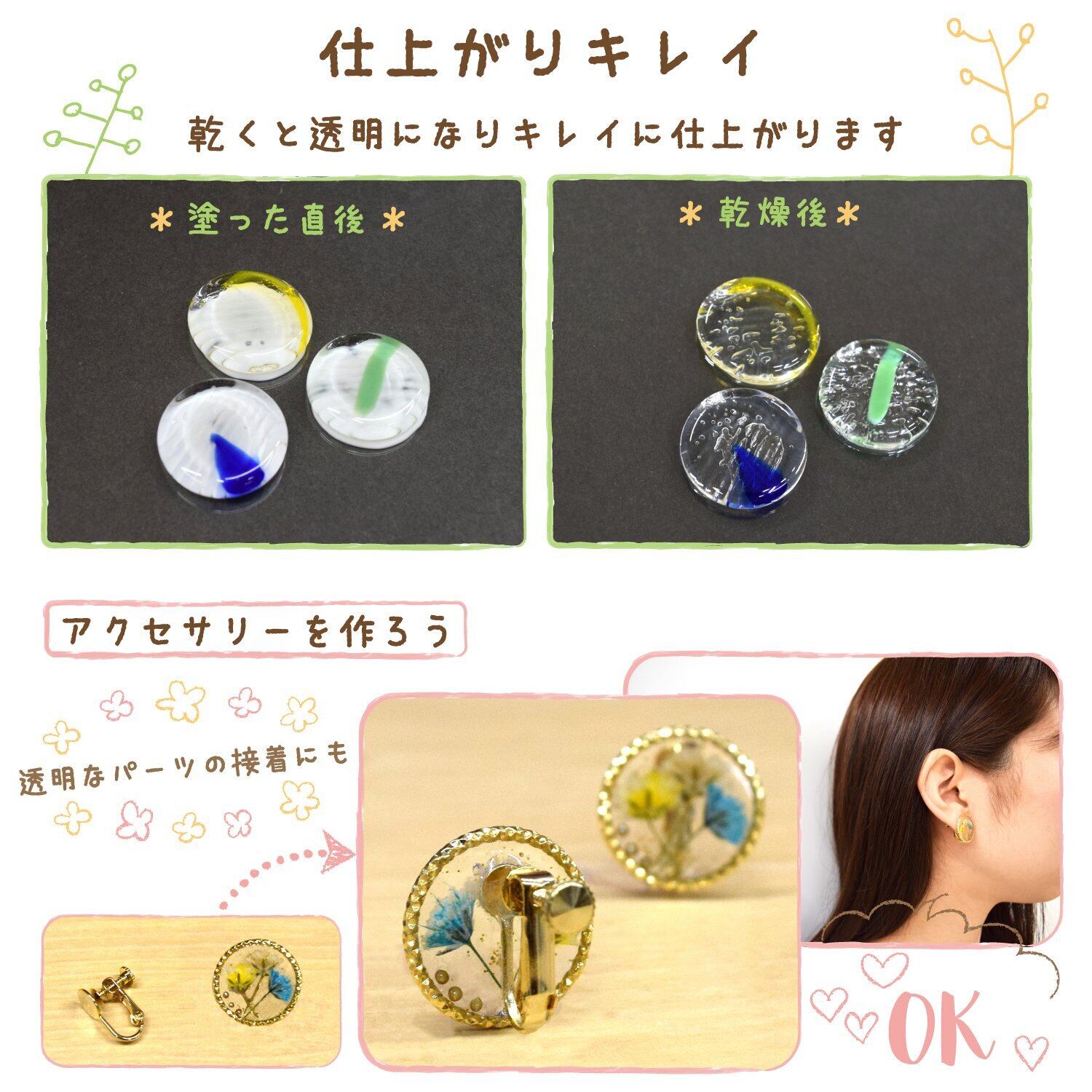 【特長2】細口ノズルで細かいところも塗りやすく、乾くと透明になるので作品がキレイに仕上がる
