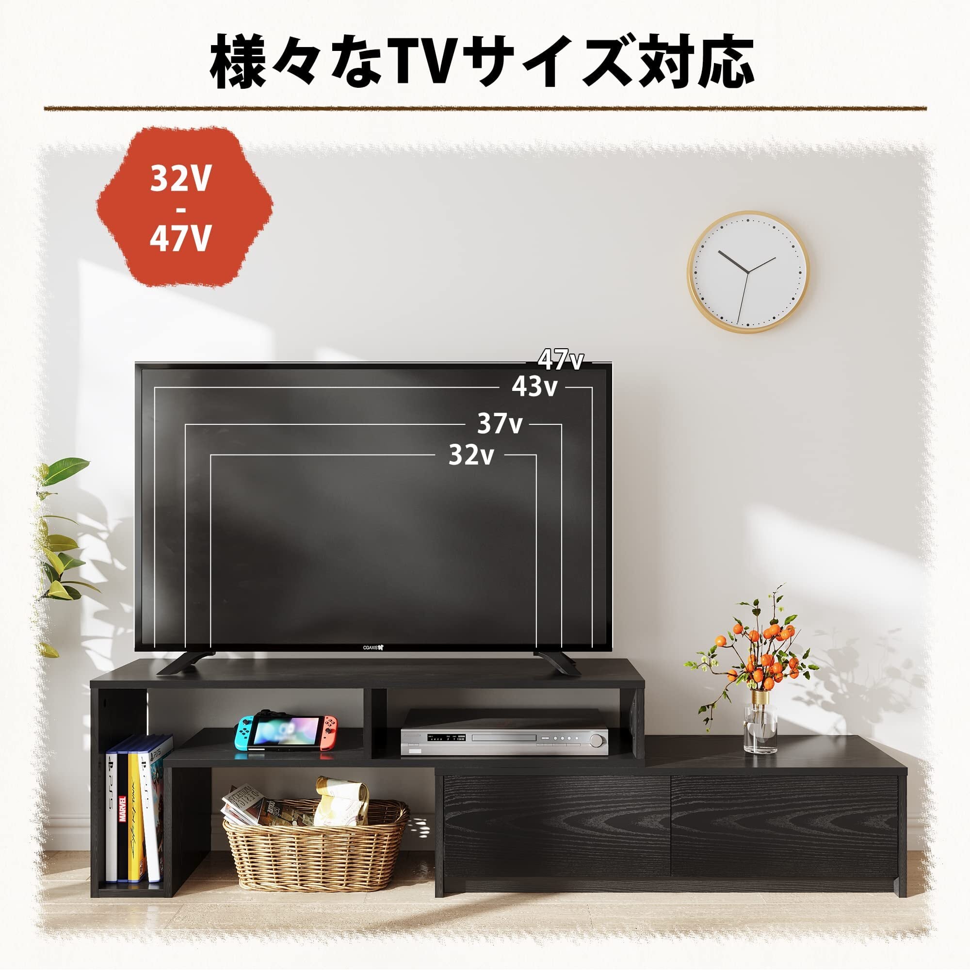 WLIVE テレビ台 テレビボード ローボード 伸縮 角度自由 コーナー 左右レイアウト 42 32インチ 省スペース 引き出し 収納 耐荷重60kg 北欧 おしゃれ ブラック