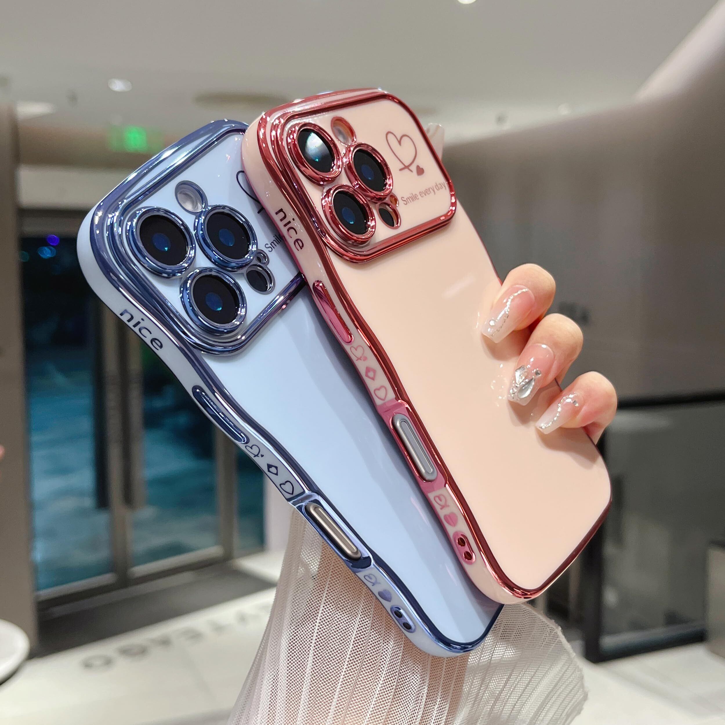 【美しいデザイン】波状の側面が快適なグリップを提供;メッキトリムと愛の心は、携帯電話のかわいいとファッションを作る;女の子と女性のための素敵な贈り物。