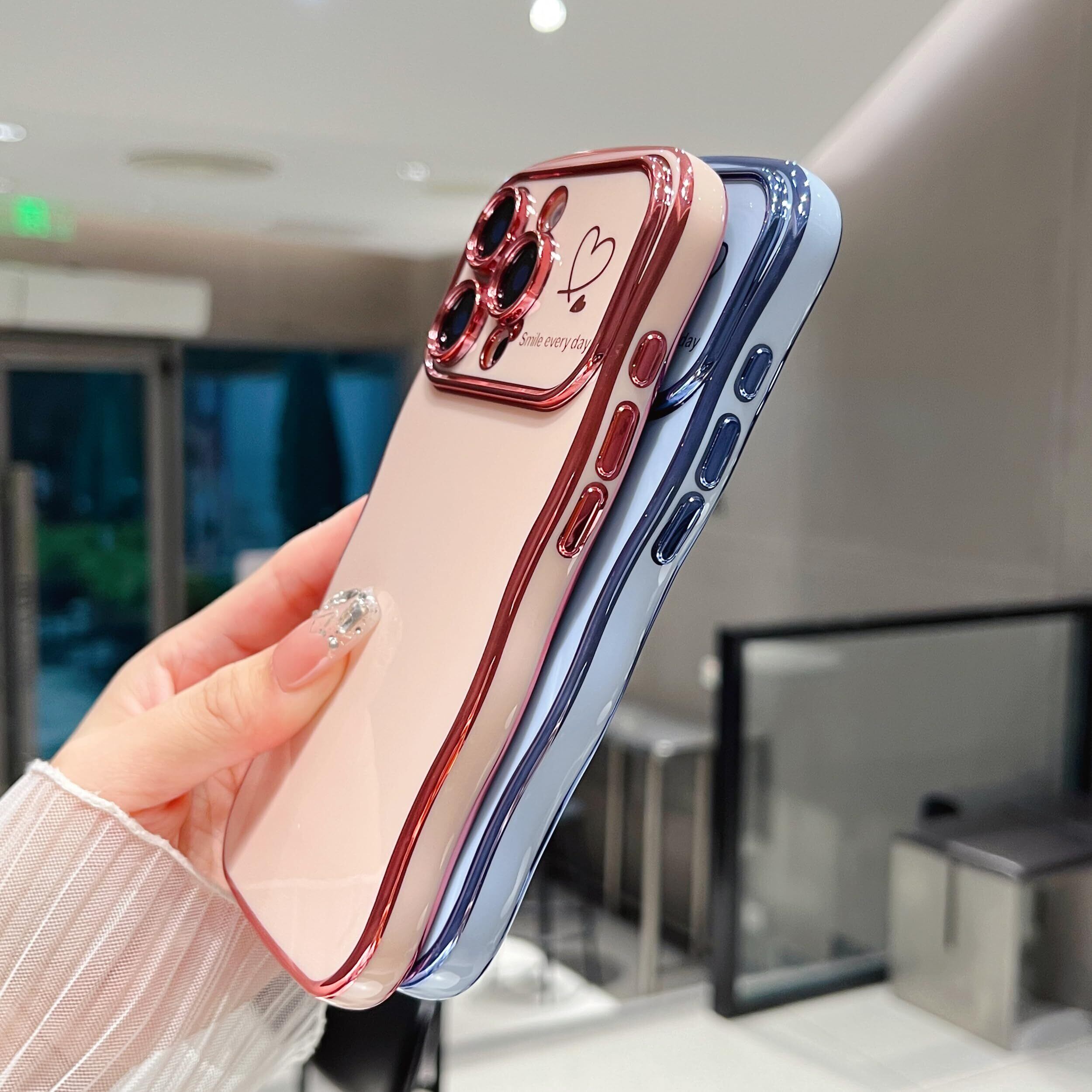 iPhone 16 Proに対応、購入前に機種をご確認ください。柔らかく柔軟なtpu素材を使用し、エッジとカメラエッジの周りにメッキ技術を使用しています。カーリーウェーブフレームがエレガントさと快適なグリップ感をプラスし、ラブハートパターンがチャーミングな魅力をさらに引き立てます。縁取りのメッキ加工が、このスマホケースにトレンディでファッショナブルな印象を与え、誰の目にも留まることでしょう。