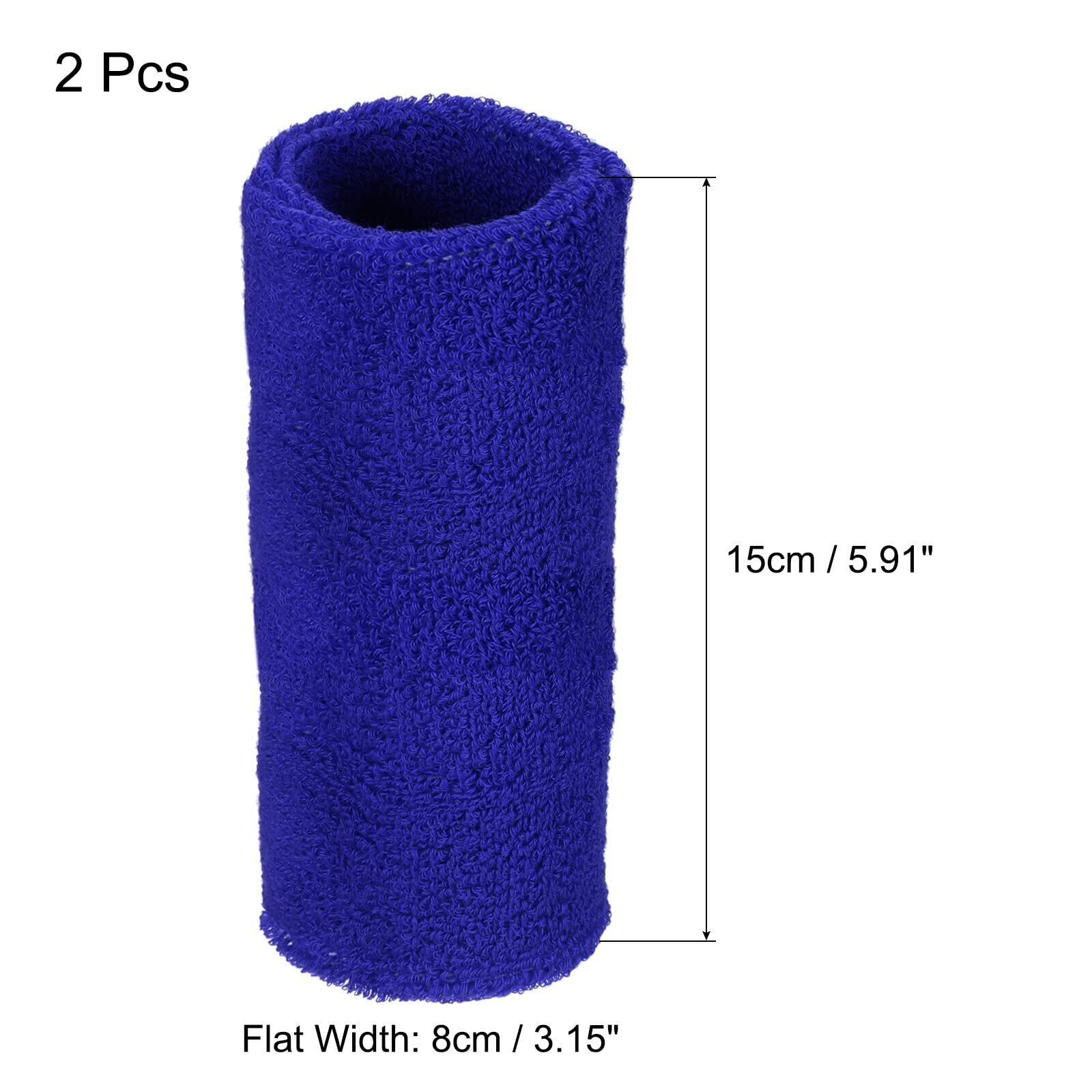 PATIKIL スポーツリストバンド 8x15cm 2本 綿テリークロス 吸収性の汗止めバンド テニス 野球 エクササイズ アスレチックランニング用 ダークブルー