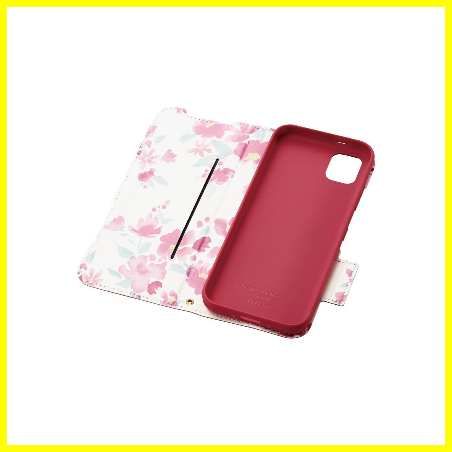 エレコム かんたんスマホ3 ケース カバー 手帳型 革 レザー 薄型 花柄(ケース内側) マグネットフラップ ストラップホール付き ピンク PM-K222PLFUJPND