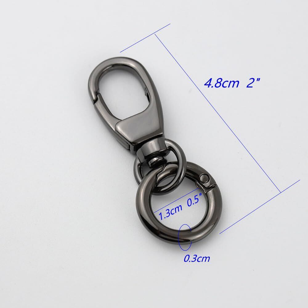 ナスカン 二重リング キーホルダー 回転フック スナップフック 手作り 手芸用品 ハンドメイド金具 レバーナスカン ワンタッチキーホルダー パーツ DIY用 アクセサリーナスカン (4.8cm, ブラック)