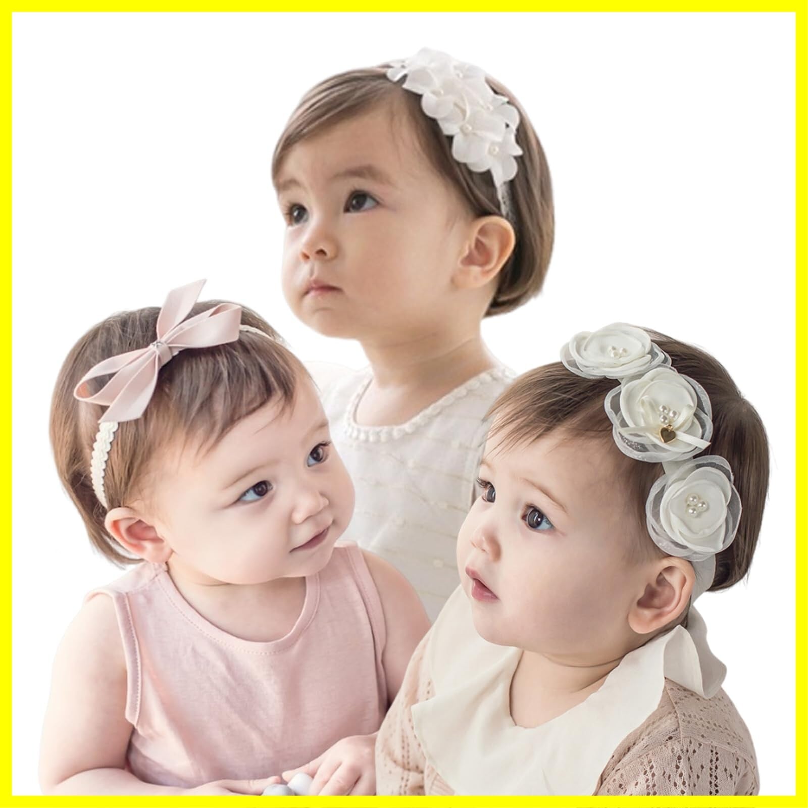 【費用対効果の高】新生児から使える可愛い赤ちゃんのヘアバンド3点セット、髪がまだ生えととのっていない時期でも、着用することでかわいくおしゃれにしてくれます。