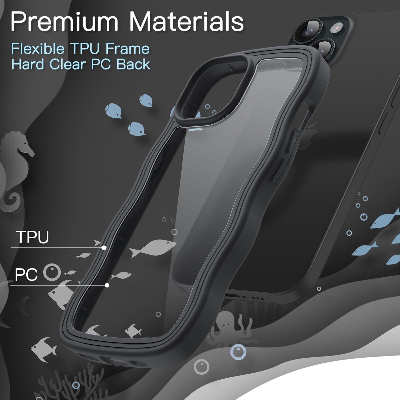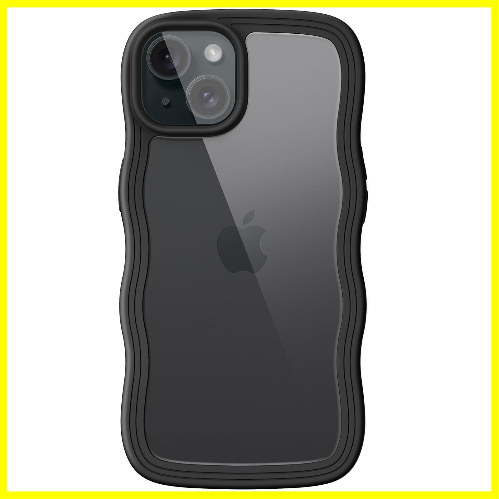 [JETech iPhone 15 6.1インチ用 かわいい ケース 波状フレーム うねうね 耐衝撃 スマホカバー 女性用 女子向け クリア ハードPCバック (ブラック)]