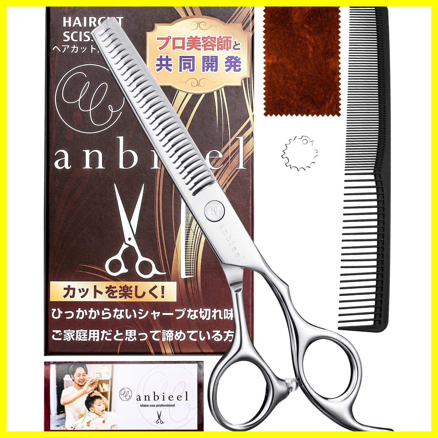 [anbieel (現役プロ美容師が総監修) すきばさみ 低すき率 スキバサミ 散髪 セルフカット セニングシザー ホームカット すきバサミ]