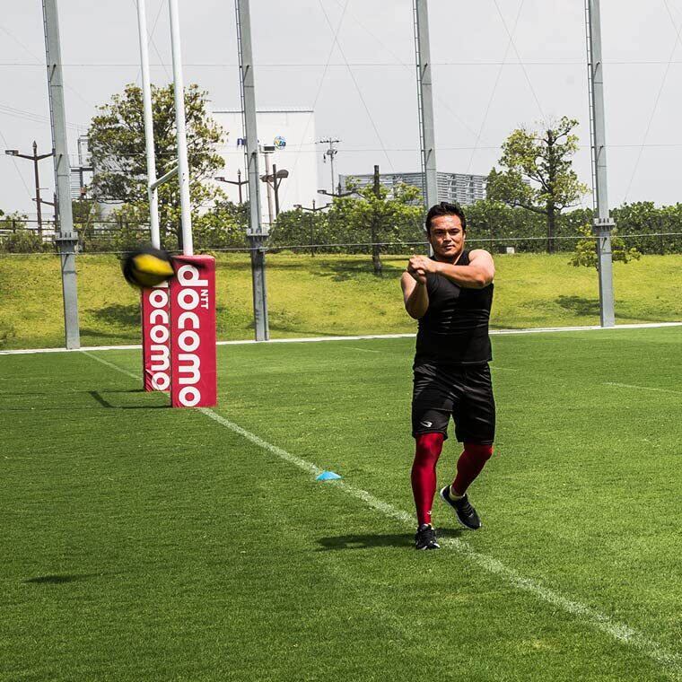 直径19~32cm、重量1~6kgまでのメディシンボールに対応し、スウィングして振り回すことで体幹を鍛えたり投てき競技のターン練習が可能