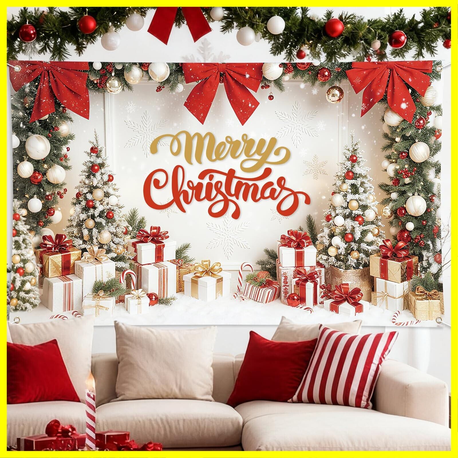 Paready クリスマス タペストリー 飾り 壁掛け バナー 壁 窓 玄関 多機能 装飾 Merry Christmas 背景 デコレーション インテリア 布ポスター お店 185*110cm プレゼント クリスマスツリー リボン