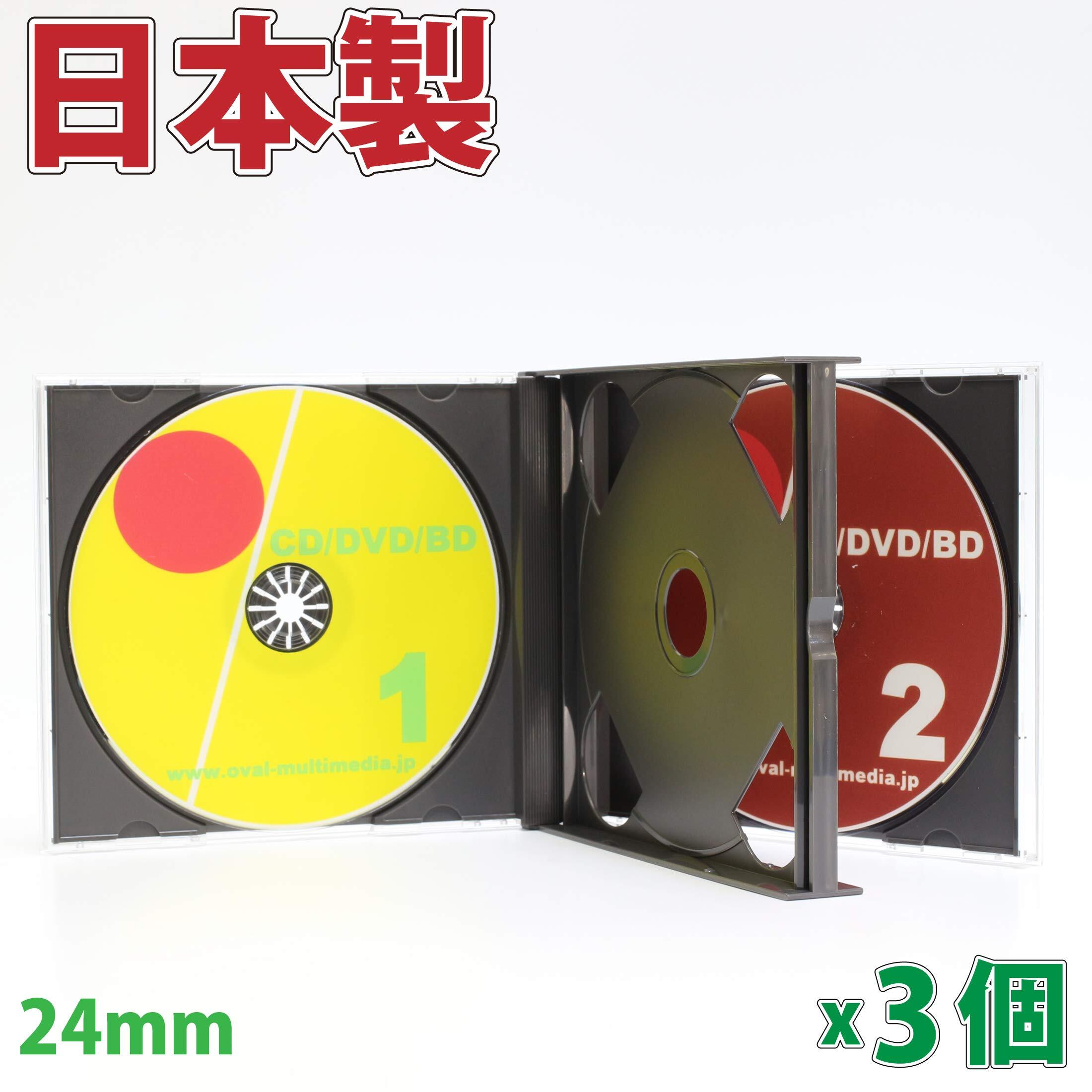 [CDケース 日本製PS24mm厚2枚収納マルチケースブラック 3個セット DVD・ブルーレイケースとしても使える]