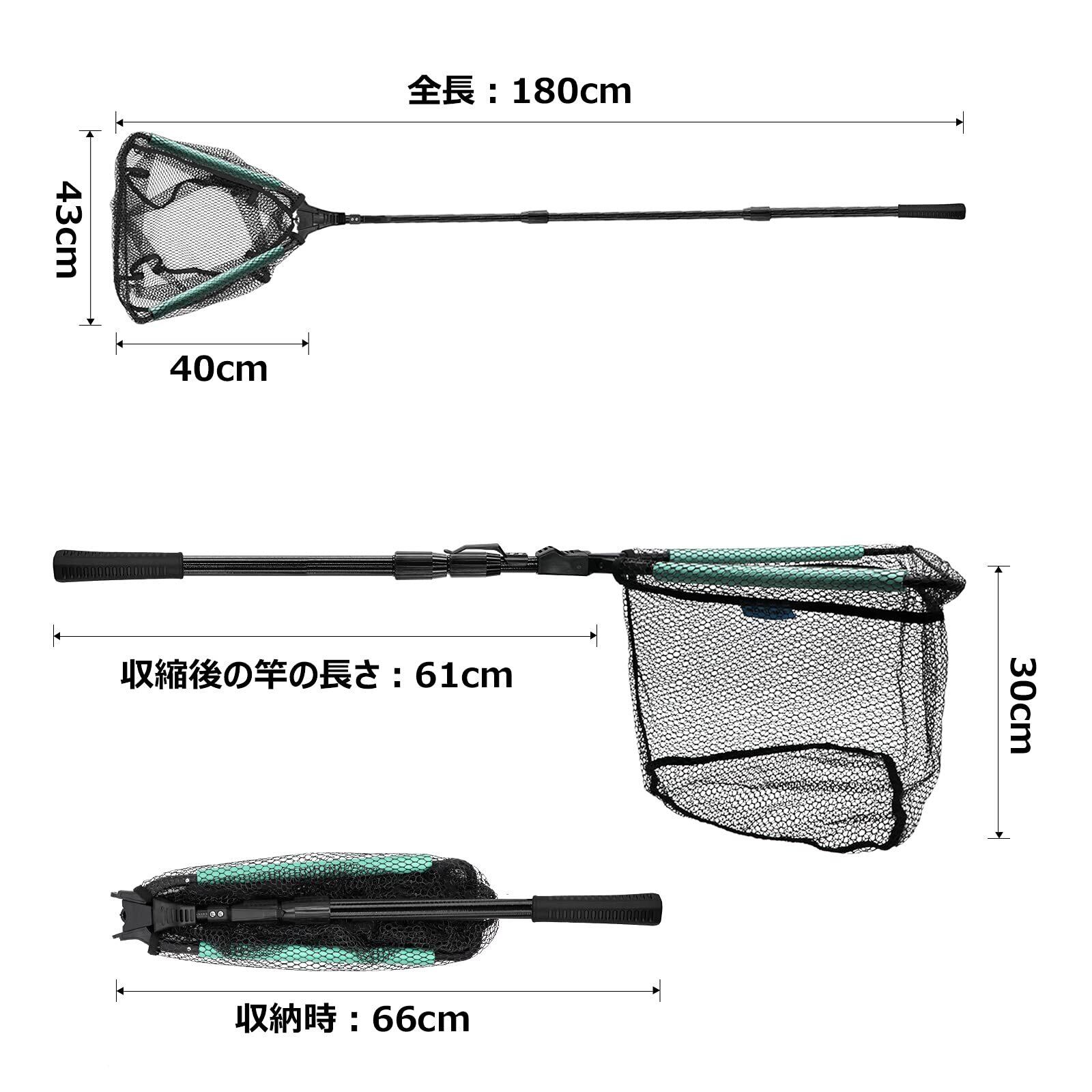 【商品仕樣】 全長:180cm、収縮後の竿の長さ:61cm、収納時:66cm、網の深さ:30cm。ワンタッチで展開、3段階調整可能! 折り畳みで、携帯楽々!