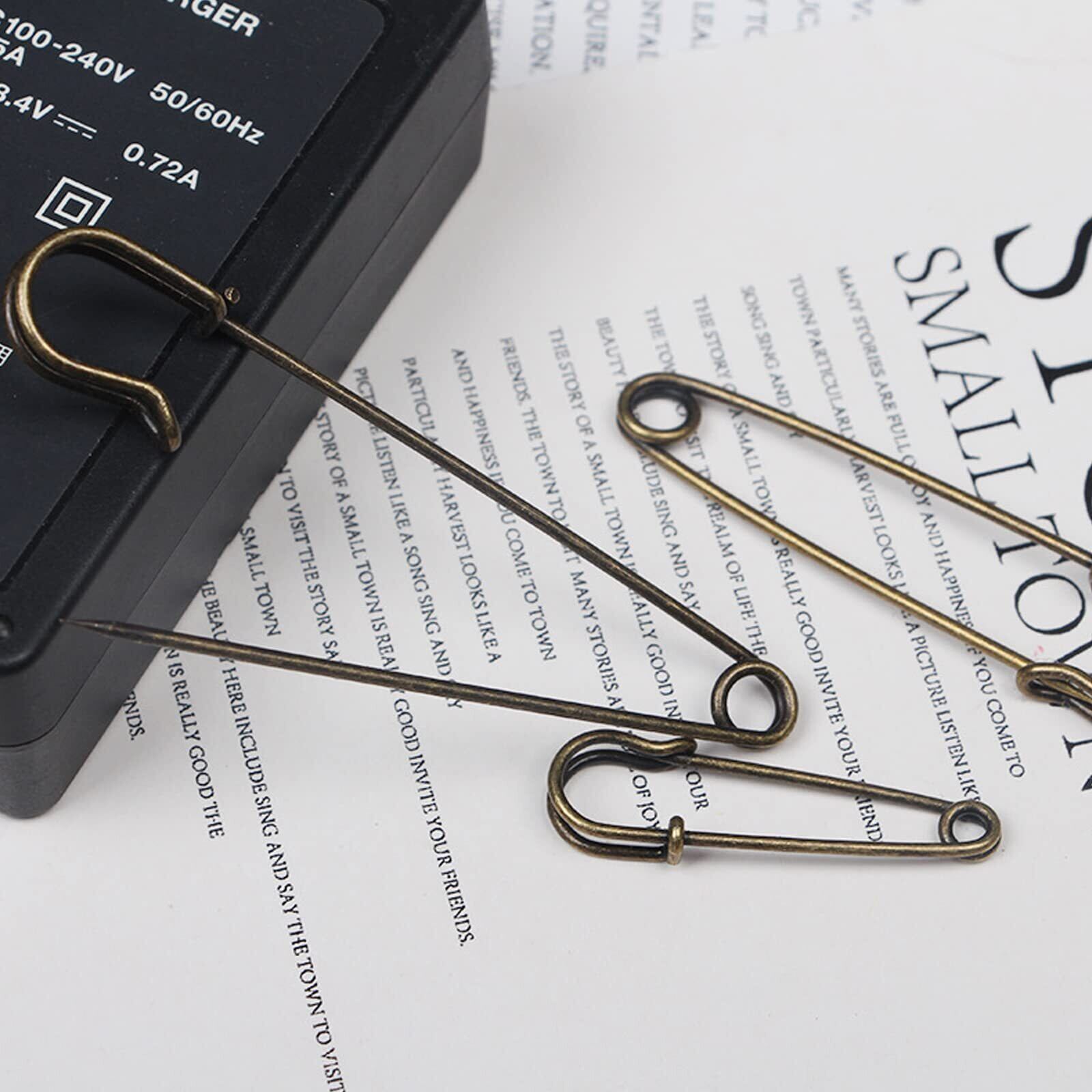 DanYun 10枚入り 100mm 特大 安全ピン キルトピン カブトピン ストールピン おしゃれ ブローチピン 針 セイフティピン シンプル ロック 名札 移動ポケット マイポケット 腕章止め 布団カバー止め スカートや帽子など ハンドメイド 手芸素材 (100mm, アンティークブロンズ)