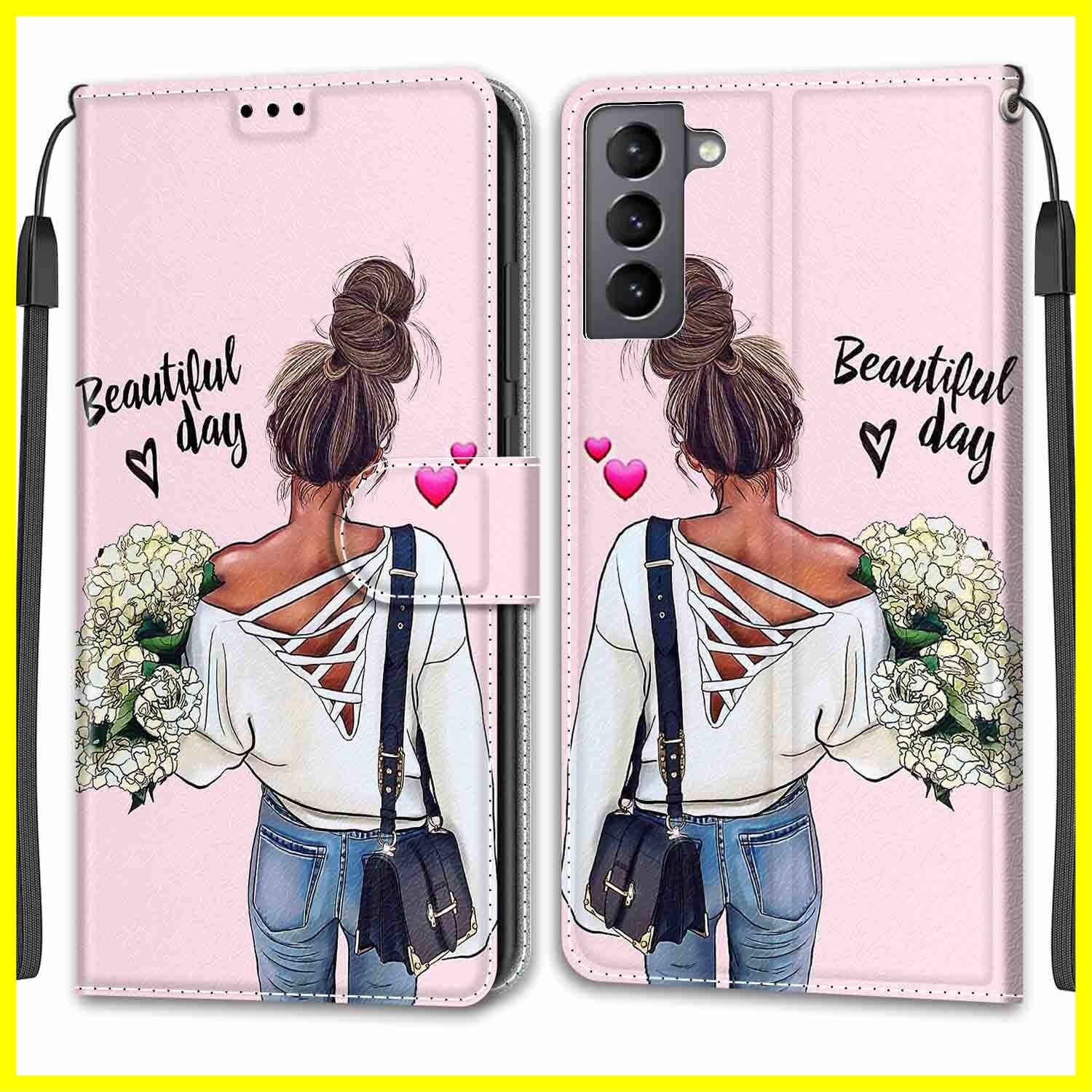 Galaxy S22 ケース手帳型 SC-51C SCG13 ケース サムスン ギャラクシーS22 手帳型ケース 携帯ケース カバー スマホケース 手帳型ケース 携帯カバー 財布型 Sumsung galaxy s22 case スタンド機能 耐衝撃 全面保護 薄型 耐摩擦 可愛い (Samsung Galaxy S22 SC-51C SCG13 対応) 女の子と花