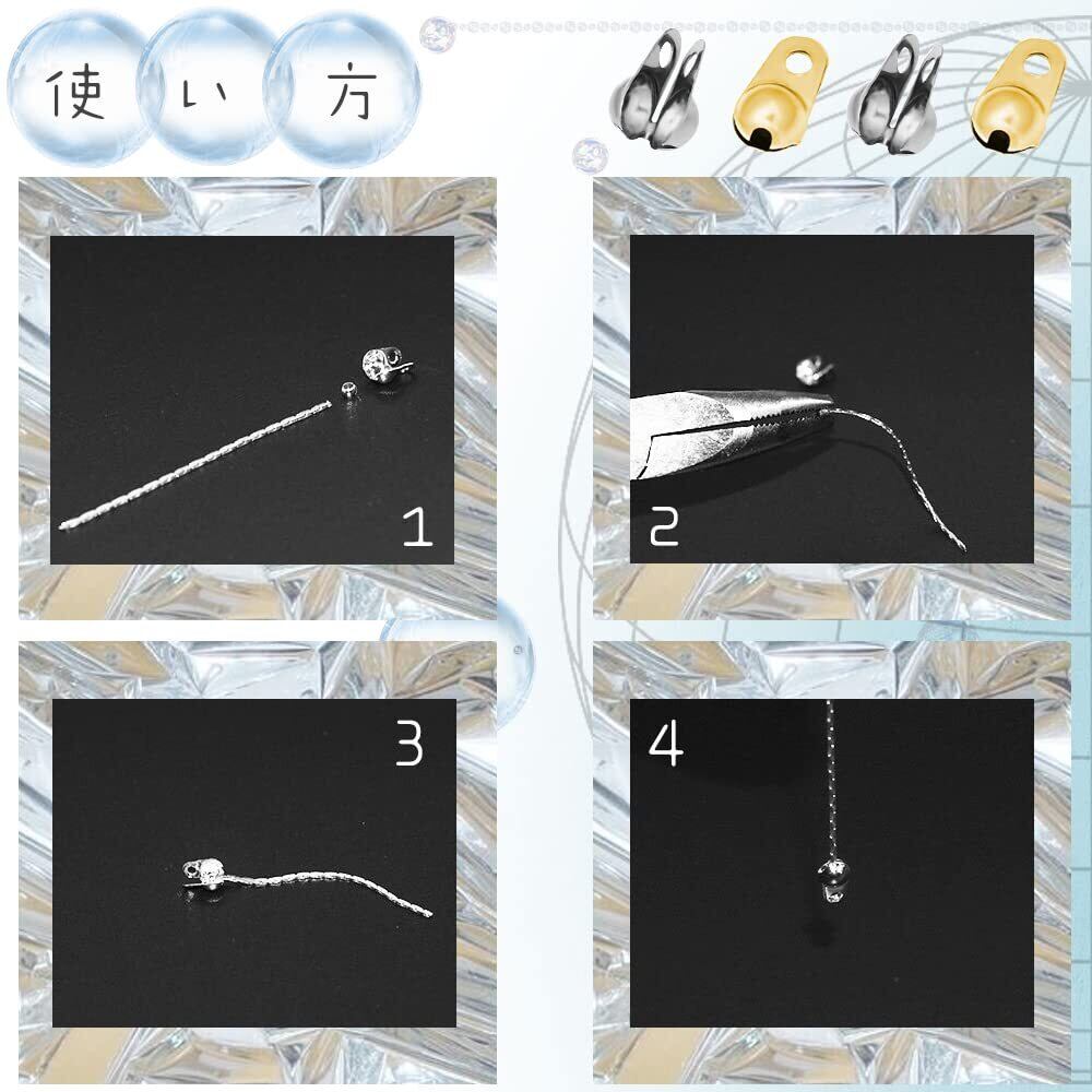 ボールチップ カシメ玉 400個セット 304 ステンレス エンドパーツ 留め具 基礎金具 ビーズ ボールチップ つぶし玉 アクセサリーパーツ 手芸用品 手作りアクセサリー DIY用 ブレスレット ネックレス用 ゴールド/シルバー各200個 (2.4mm側面開口部)