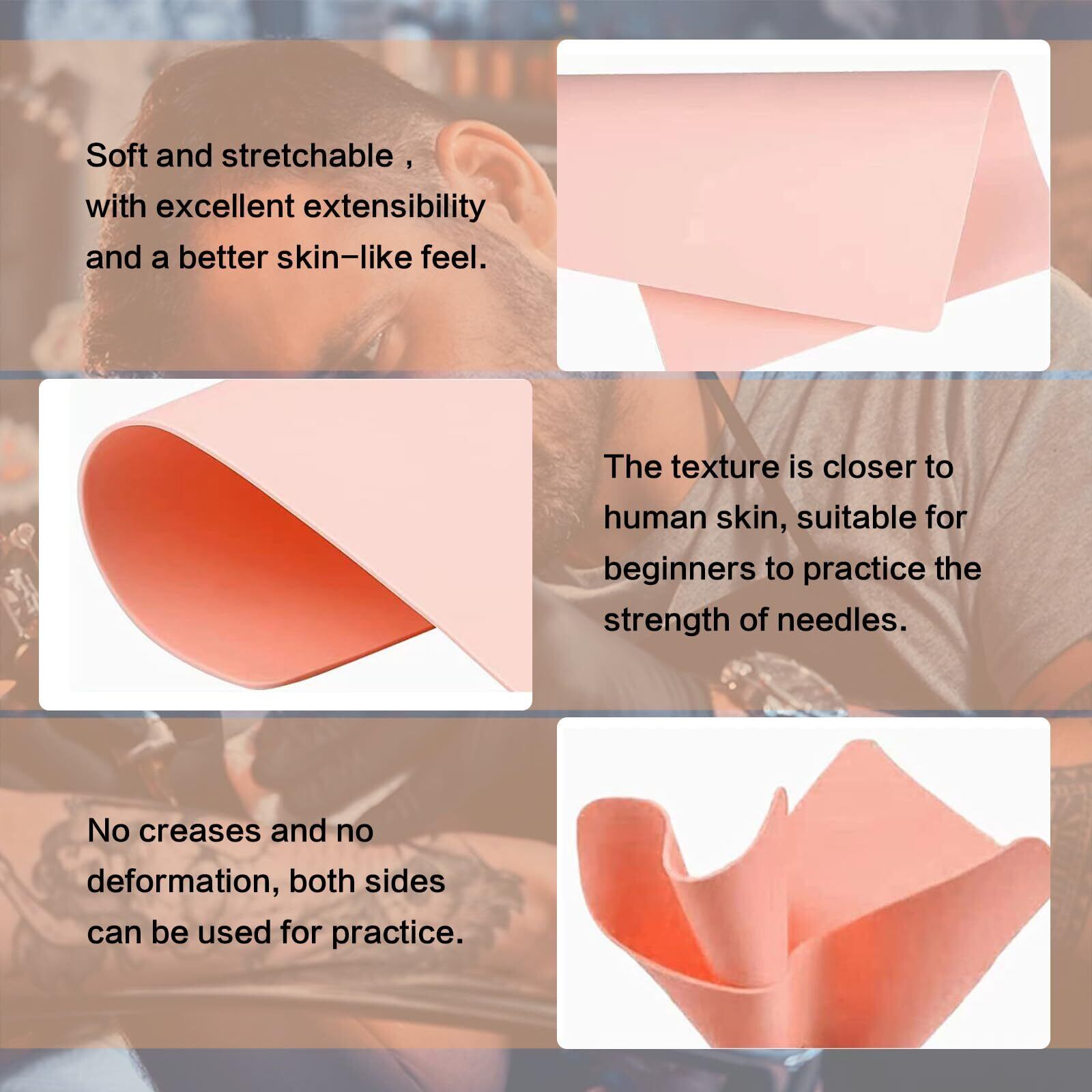 柔軟な使用-柔らかいシリコンタトゥーの練習用皮膚は、オブジェクトの周りに巻き付けて、希望の輪郭を与えることができます。腕や脚、胸、背中などの輪郭のある体の部分にタトゥーを入れて、さまざまな曲線や輪郭をよりよく練習する方法を学ぶのに役立ちます。
