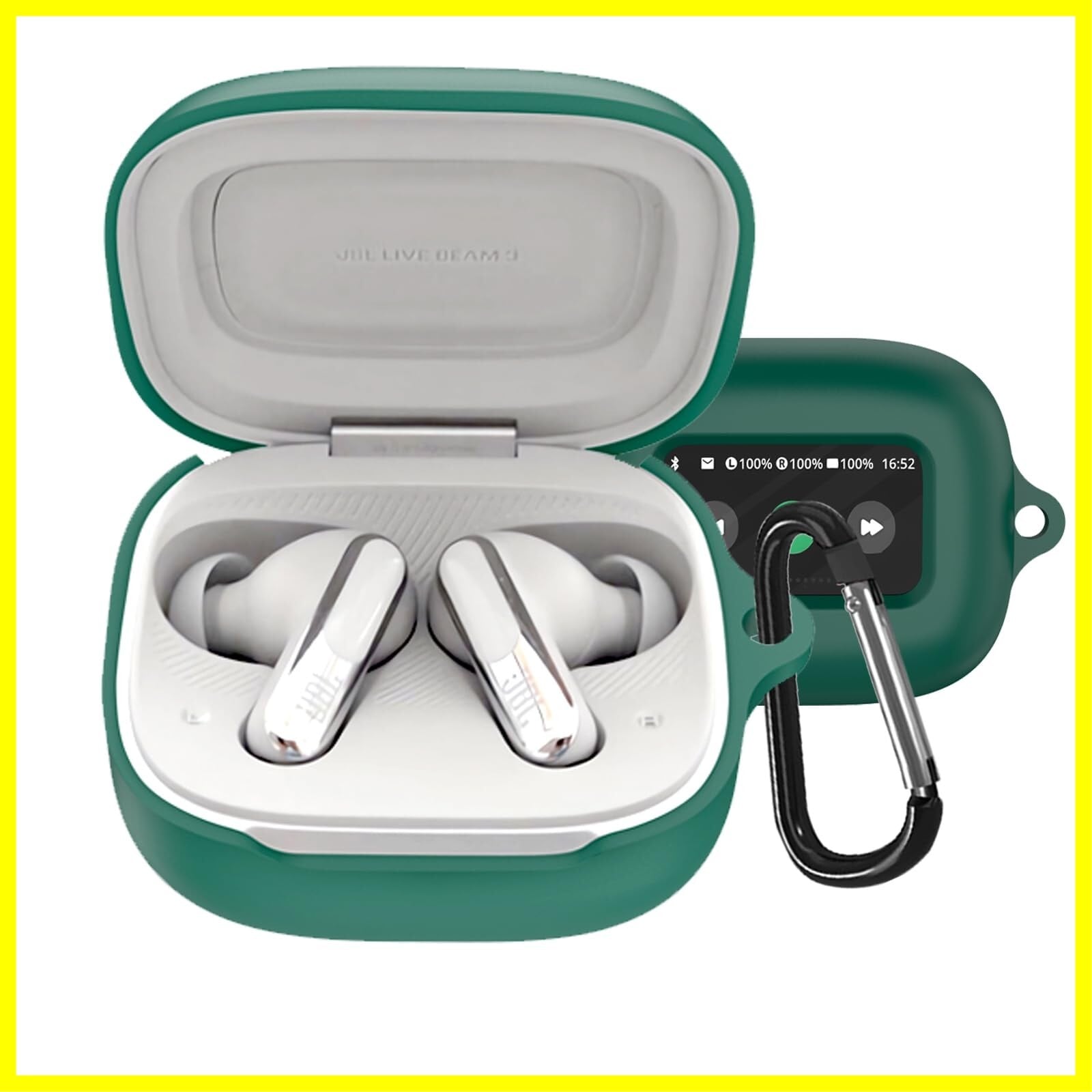 [JBL LIVE BEAM 3 ケース JBL LIVE BEAM 3 保護カバー JBL LIVE BEAM 3 ケース 柔らかい シリコン製 落下防止 キズ防止 耐衝撃 防塵 軽量 装着充電可能 カラビナ付き 紛失防止(グリーン)]
