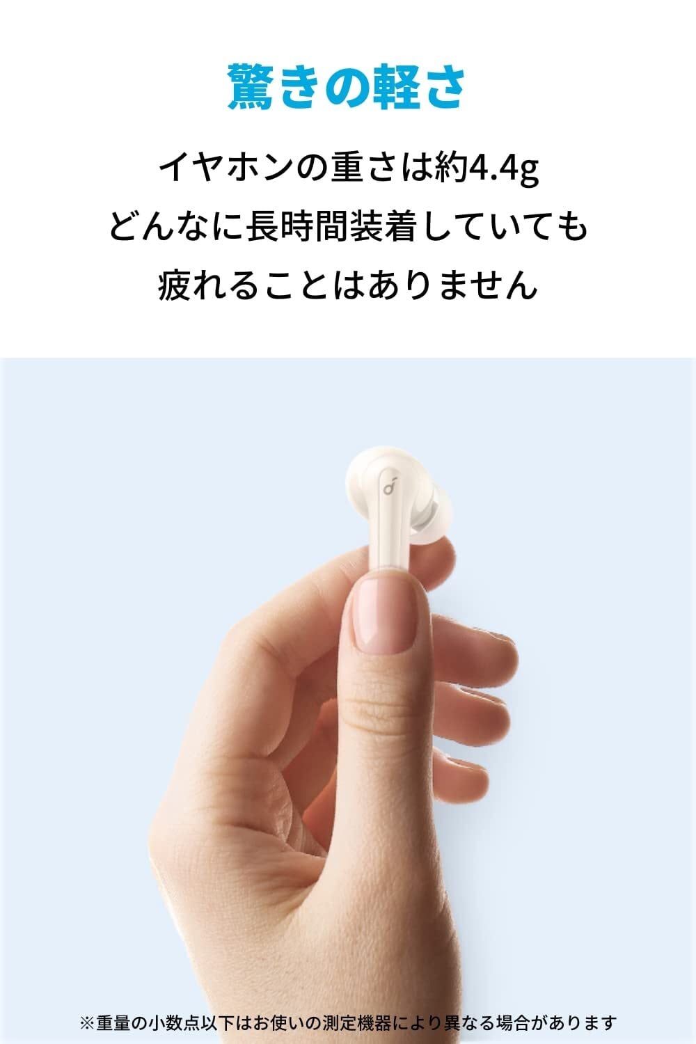 驚きの軽さ・コンパクトなサイズ感:イヤホンの重さは約4.4g。どんなに長時間装着していても疲れることはありません。ケースもコンパクトなサイズで小さなポケットやカバンの中にもすっきりと収まります。