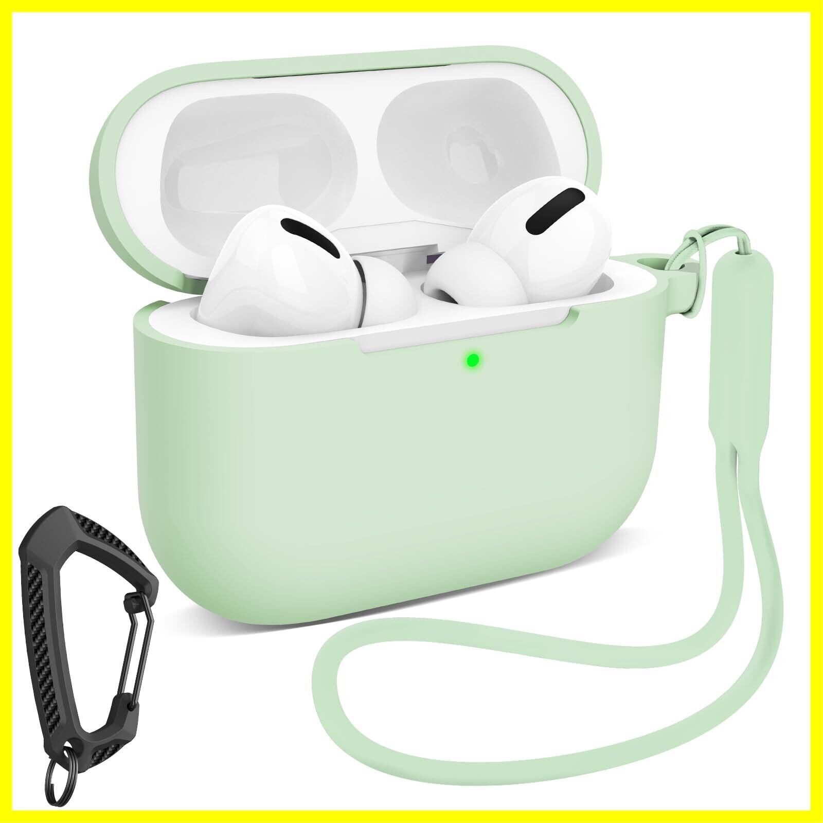[MILPROX AirPods Pro 3 ケース(2025) エアーポッズ プロ 第3世代 専用ケース シリコン ソフト 全面保護 耐衝撃 防震 防塵 落下/紛失防止 ワイヤレス充電対応 カラビナ&シリコン製ストラップ付き(ミントグリーン)]