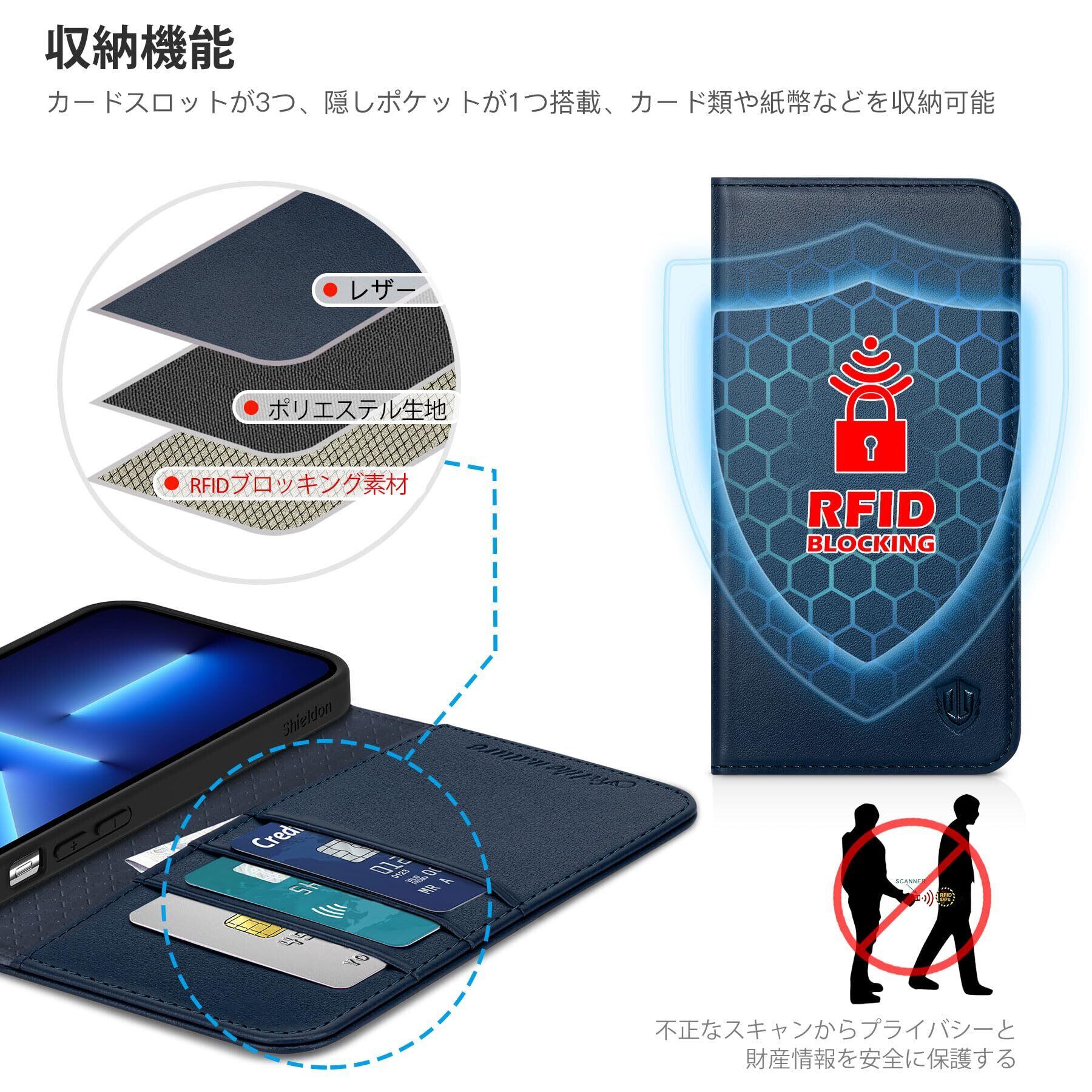 [SHIELDON iPhone13 対応ケース 手帳型 本革レザー 衝撃吸収 [RFIDブロッキング] 全面保護 TPU素材 カード収納 財布型 横置きスタンド機能 マグネット内蔵 あいふぉん13対応 スマホケース 5G 2021年発売 6.1インチ ネイビーブルー]