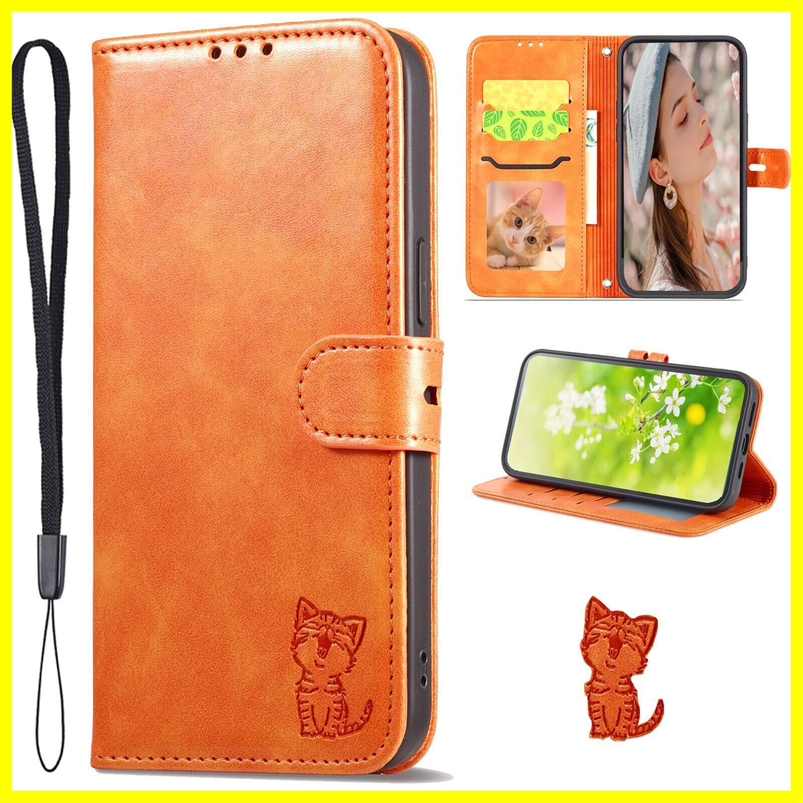 [Xiaomi 13T ケース 手帳型 XIG04 au/Xiaomi 13T Pro ケース 手帳型 SoftBank 通用 SIMフリー 対応 カバー 手帳型ケース スマホケース シャオミ13T プロ ケース 携帯ケース Xiaomi13t case PUレザー TPUケース ストラップ付き 財布型 ベルトマグネット スタンド機能 かわいい 笑顔猫柄 耐衝撃 汚れ防止 薄型 オレンジ]