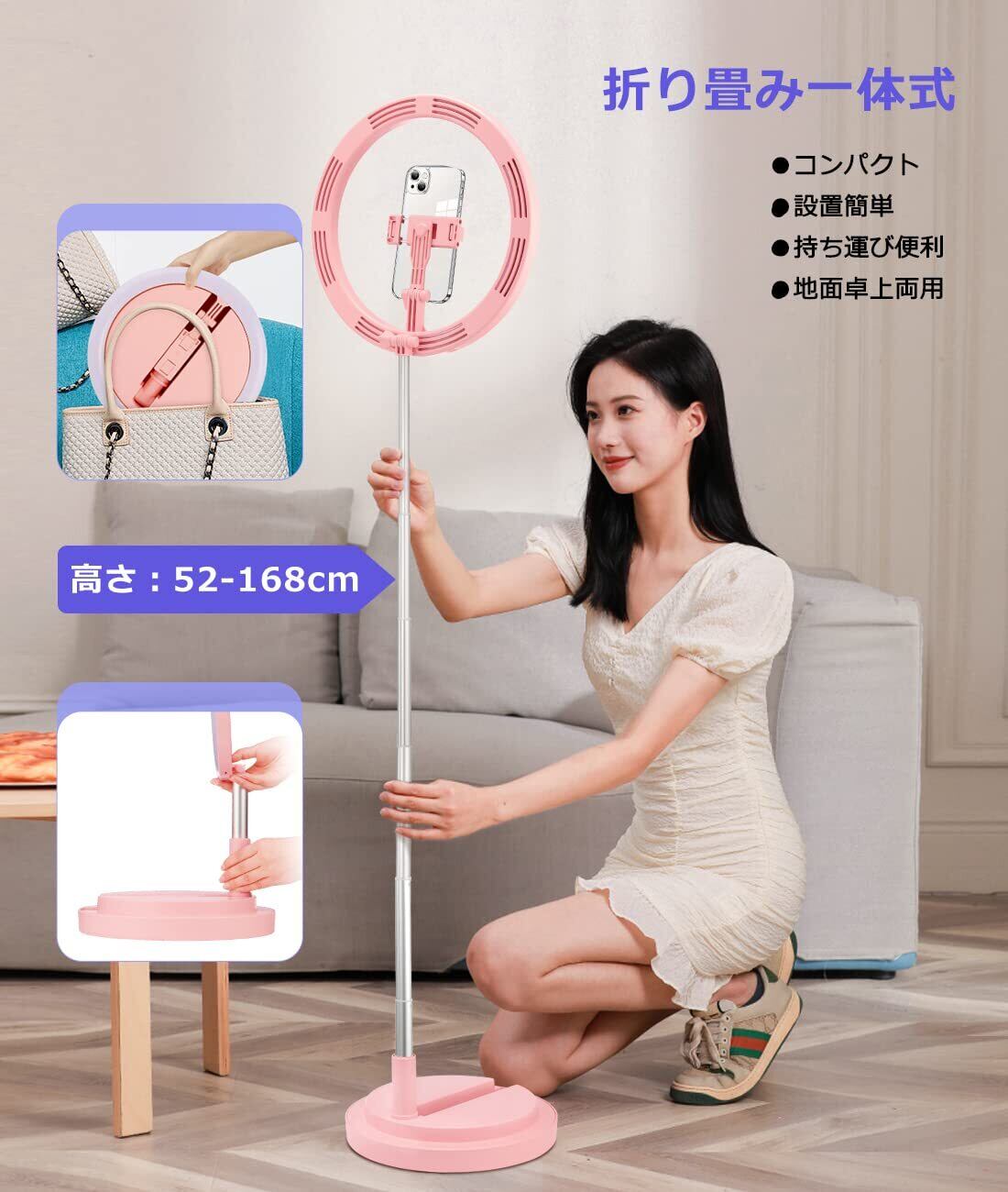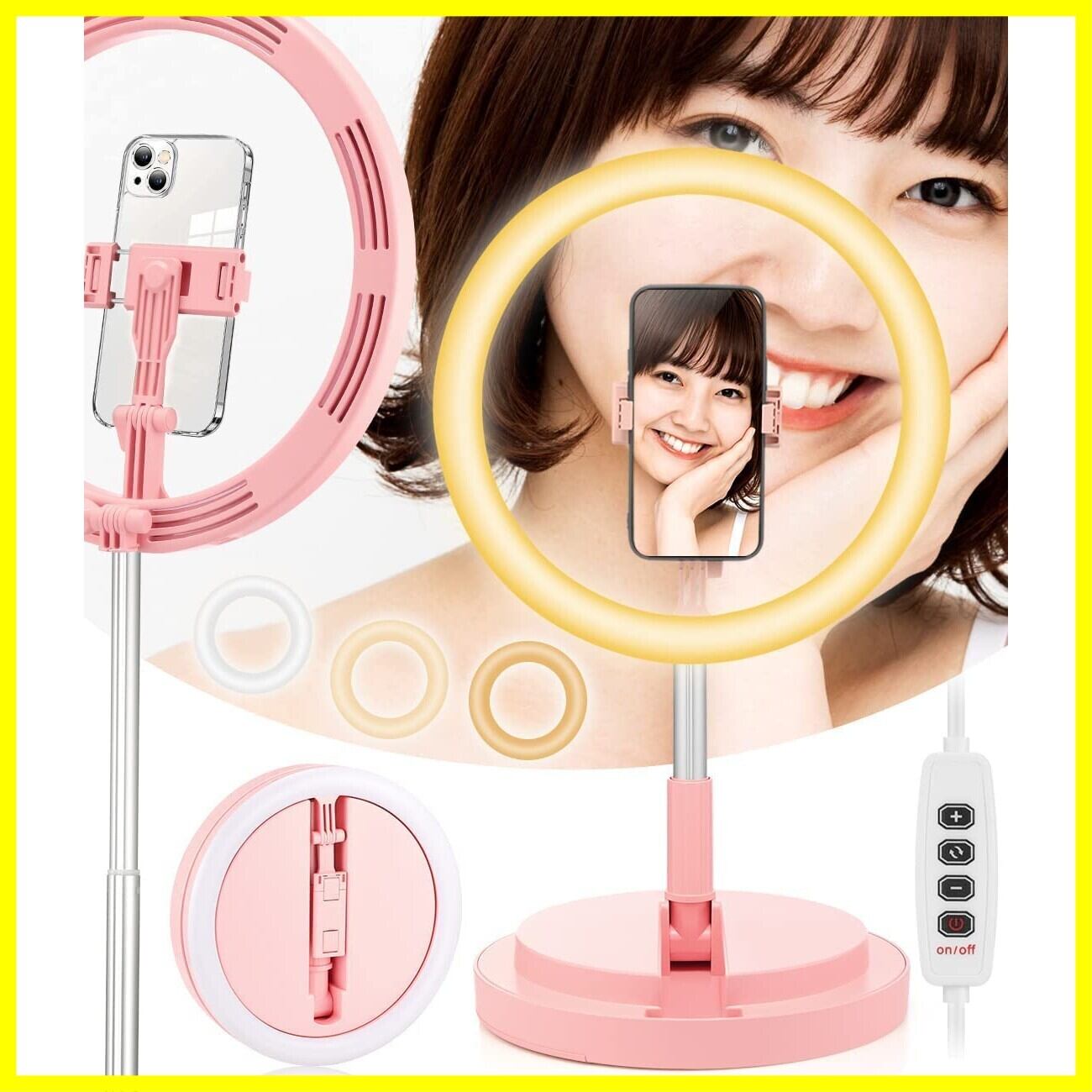 [LEDリングライト 折りたたみ一体式 【アップグレード版】 Sunnila 卓上地面両用 リングライト 撮影用 自撮り用 配信用ライト 俯瞰撮影対応 11.4インチ 3色モード 10段階調光 卓上スタンド USB給電式 テレワーク/web会議/Youtubeビデオ/TIKTOK/自撮り/生放送/化粧/Zoom/美顔ライト/カメラ撮影に適用 日本語取扱 (ピンク)]