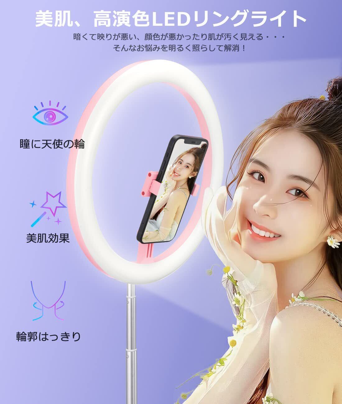 【多機能でスタイリッシュなLEDリングライト!】この[LEDリングライト]は、撮影や自撮りに特化した便利なアイテムです。11.4インチの大きなサイズが、あなたの魅力を最大限に引き出します。ピンクカラーのデザインが、どこでも華やかさを添えます!