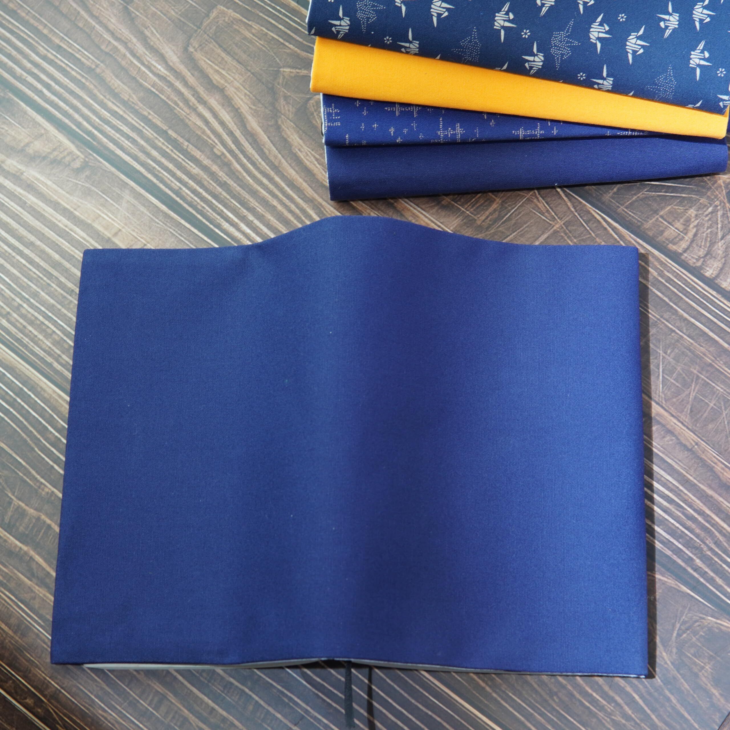 gogesブックカバー裏地防水加工 a5サイズ 布製 ― 高級本カバー サイズ調整可能 厚め対応可 しおり付き 軽量 おしゃれ(a5 ネイビー)