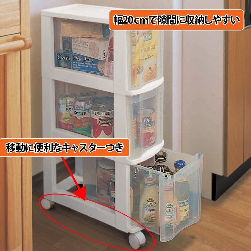 キッチンの隙間活用に最適な幅20cmの3段タイプのチェストです。