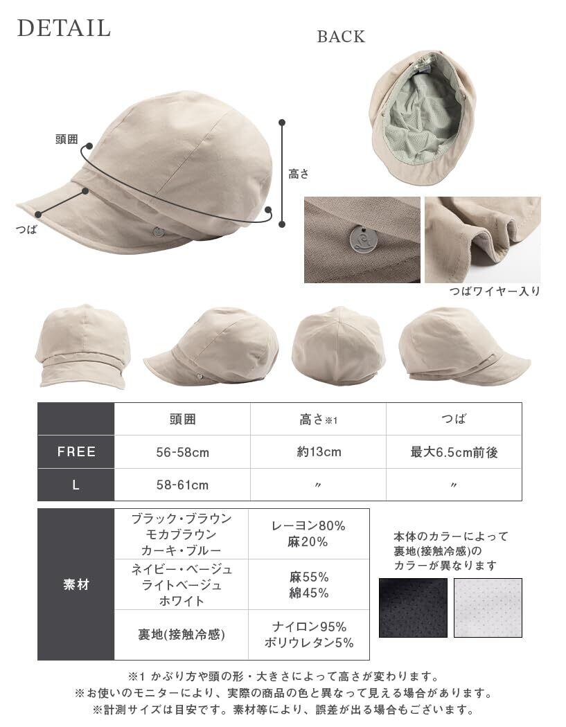 [Loo&c] [ルーアンドシー] 遮光100% UVカット 帽子 キャスケット レディース 大きいサイズ 小顔みせ メロウキャスケット 接触冷感 ハット 紫外線対策 サイズ調整可能