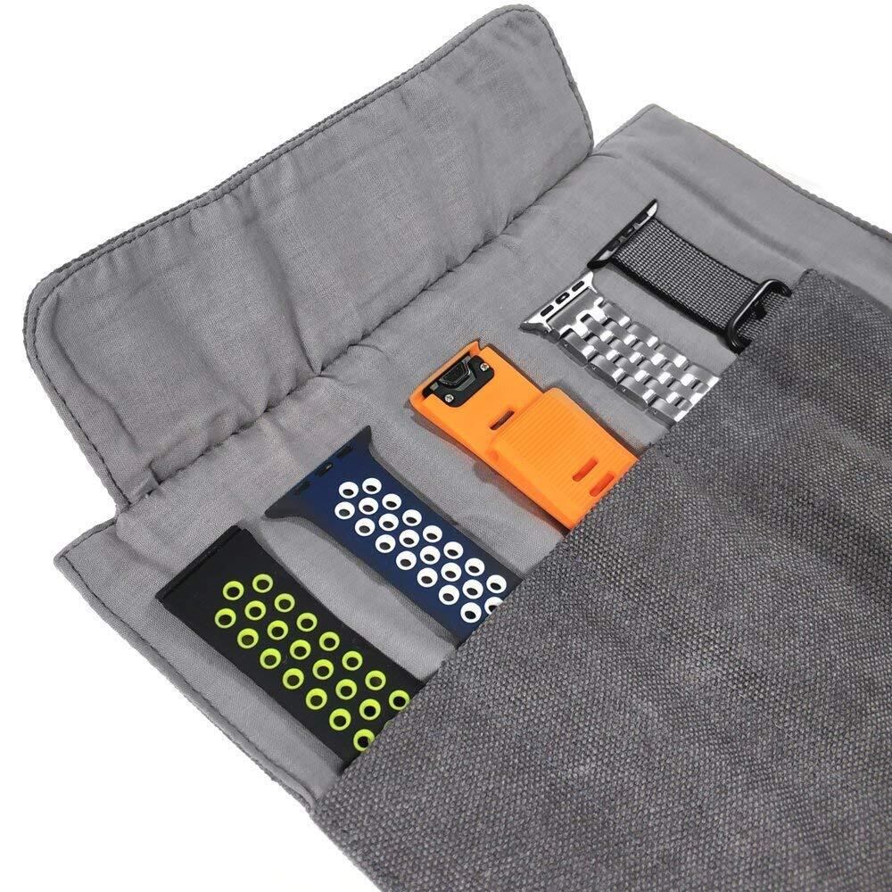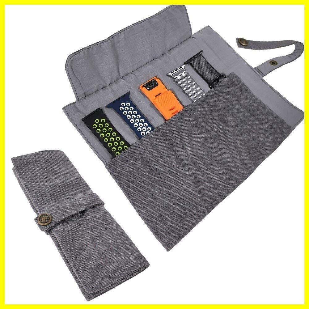 スマートウォッチバンド 収納バッグ 5本格納 キャンバスポータブル ウォッチバンド ホルダー Apple/Garmin/Samsungなどのスマートウォッチ用交換バンドを保管