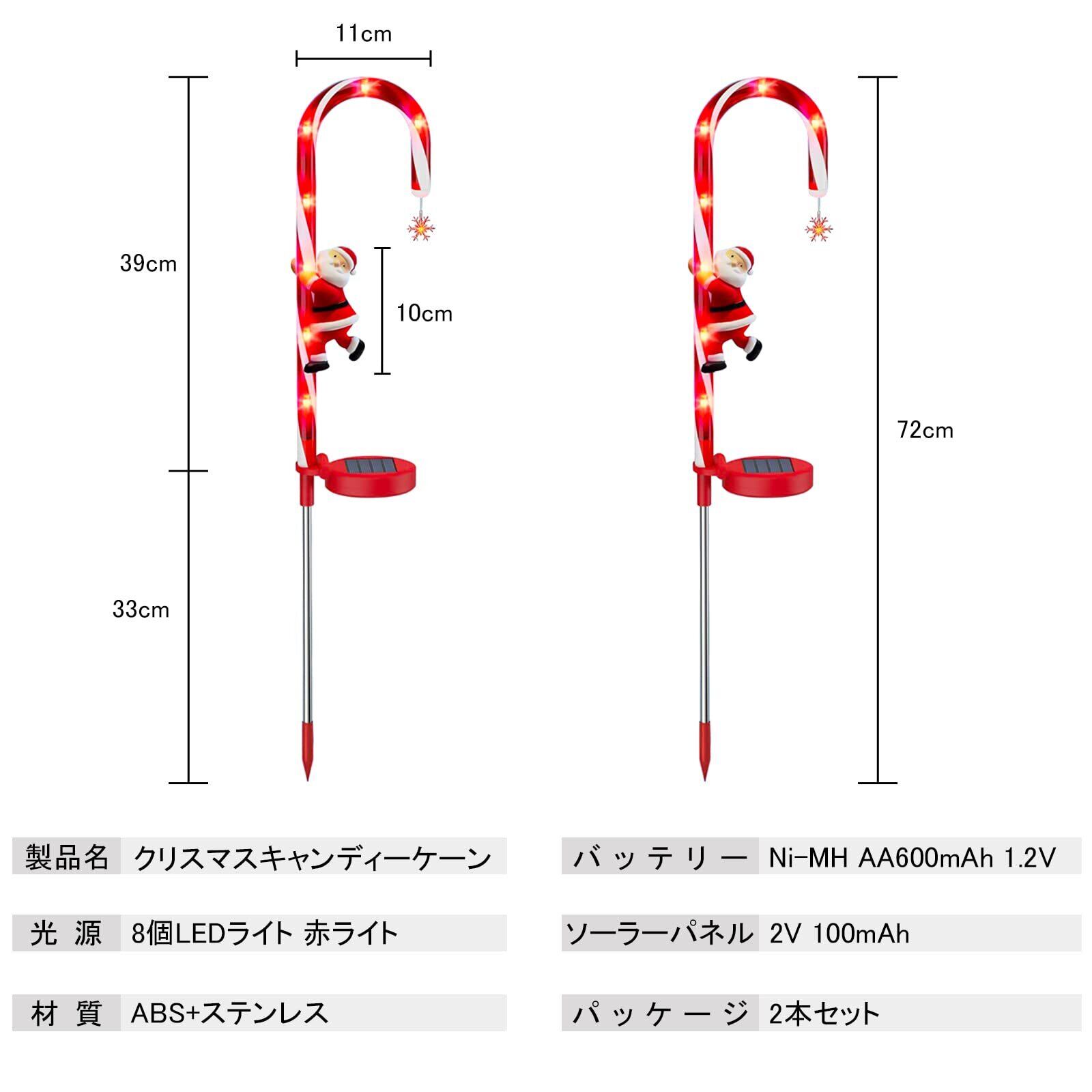 [キャンディー&サンタ] イルミネーションライト 屋外 防水 2本セット クリスマスツリー ソーラー ガーデンライト 埋め込み 夜間自動点灯