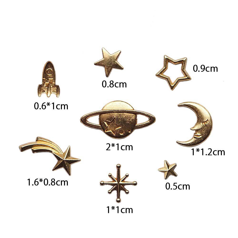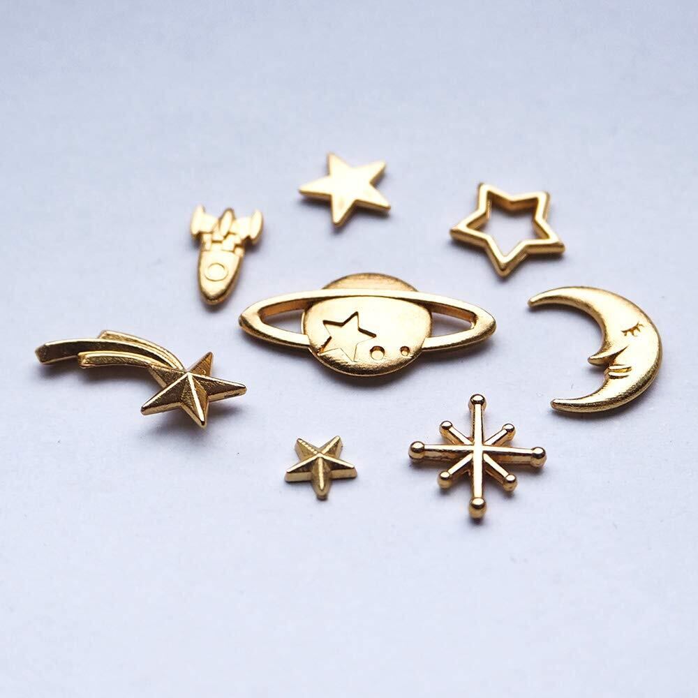 sempiterno レジン 封入材 星 月 土星 ロケット 天体 宇宙モチーフ バラエティチャームセット 大容量mix メタル uv アクセサリー レジン パーツ DIY 封入 手芸材料 合金 8種 収納ボックス付き (ゴールド)
