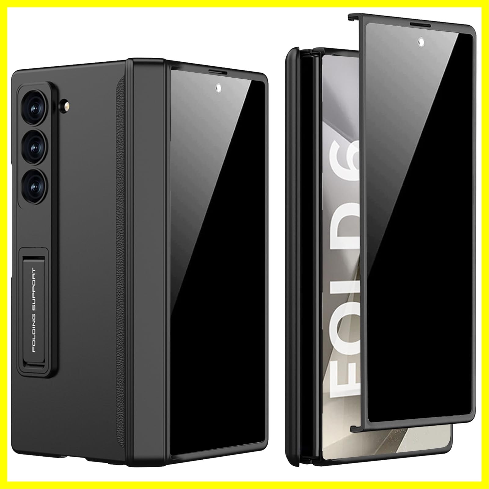 DEMCERT Galaxy Z Fold6ケース ギャラクシーフォールド6ケース 【覗き見防止フィルム付き】/スタンド機能/ワイヤレス充電対応/磁気ヒンジ/レンズ保護/耐衝撃/傷防止/落下防止/全身保護カバー 純正 おしゃれ (ブラック)