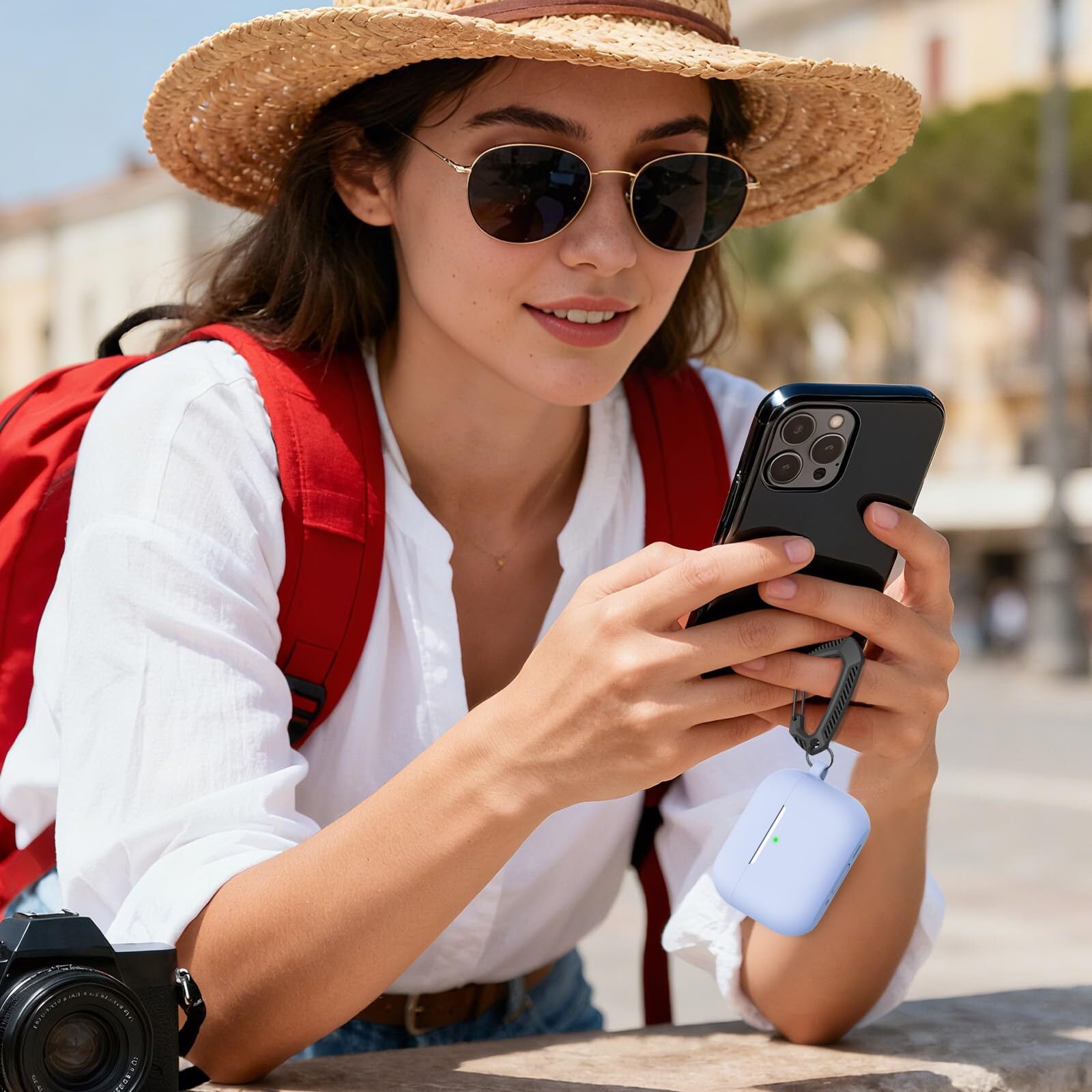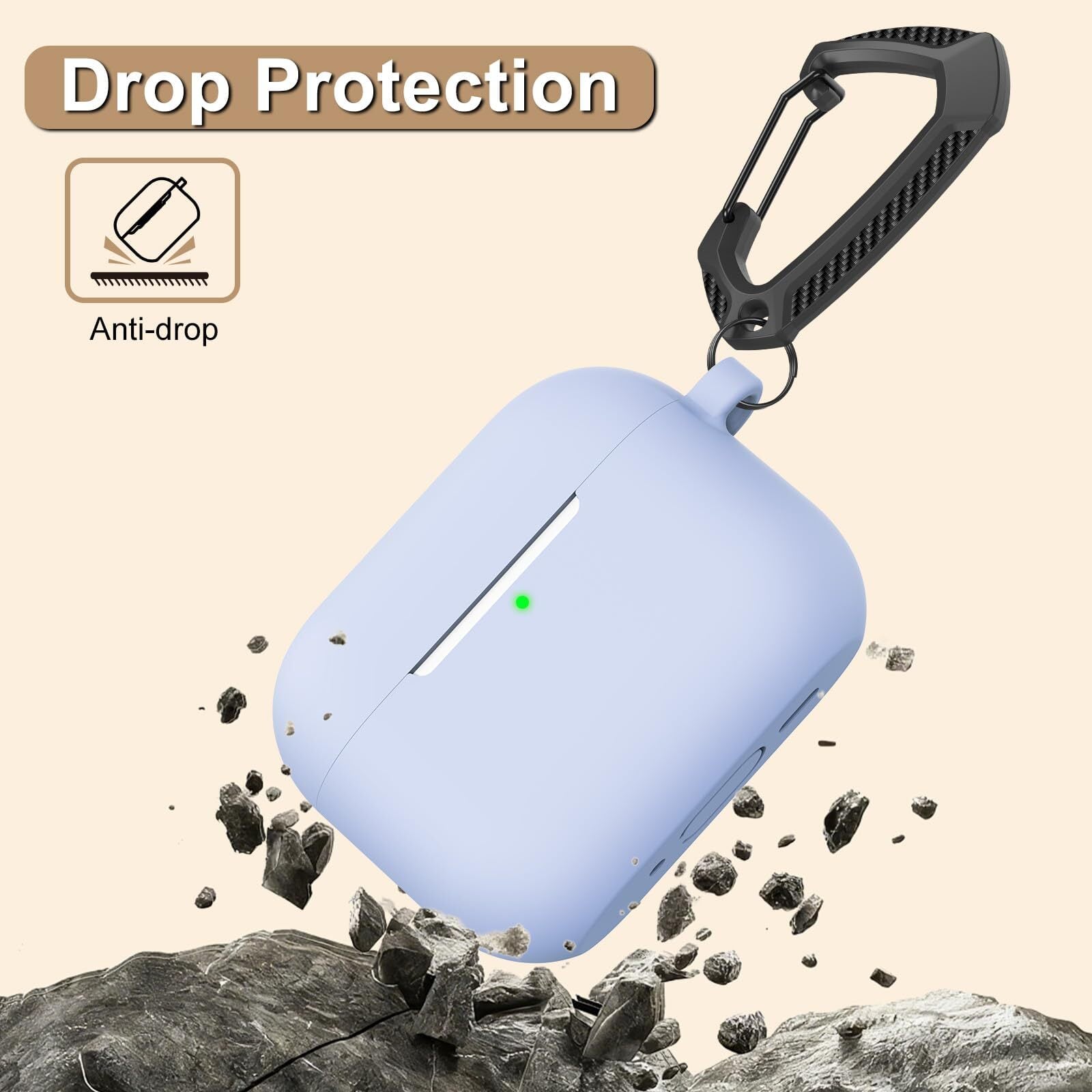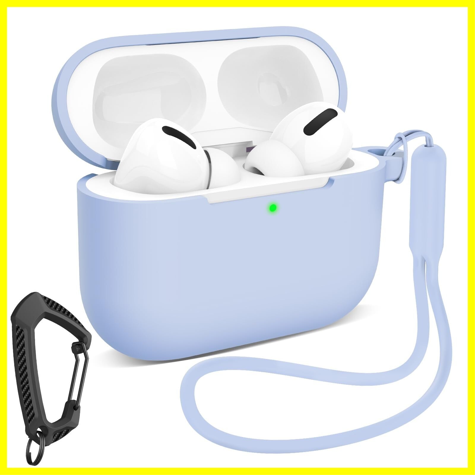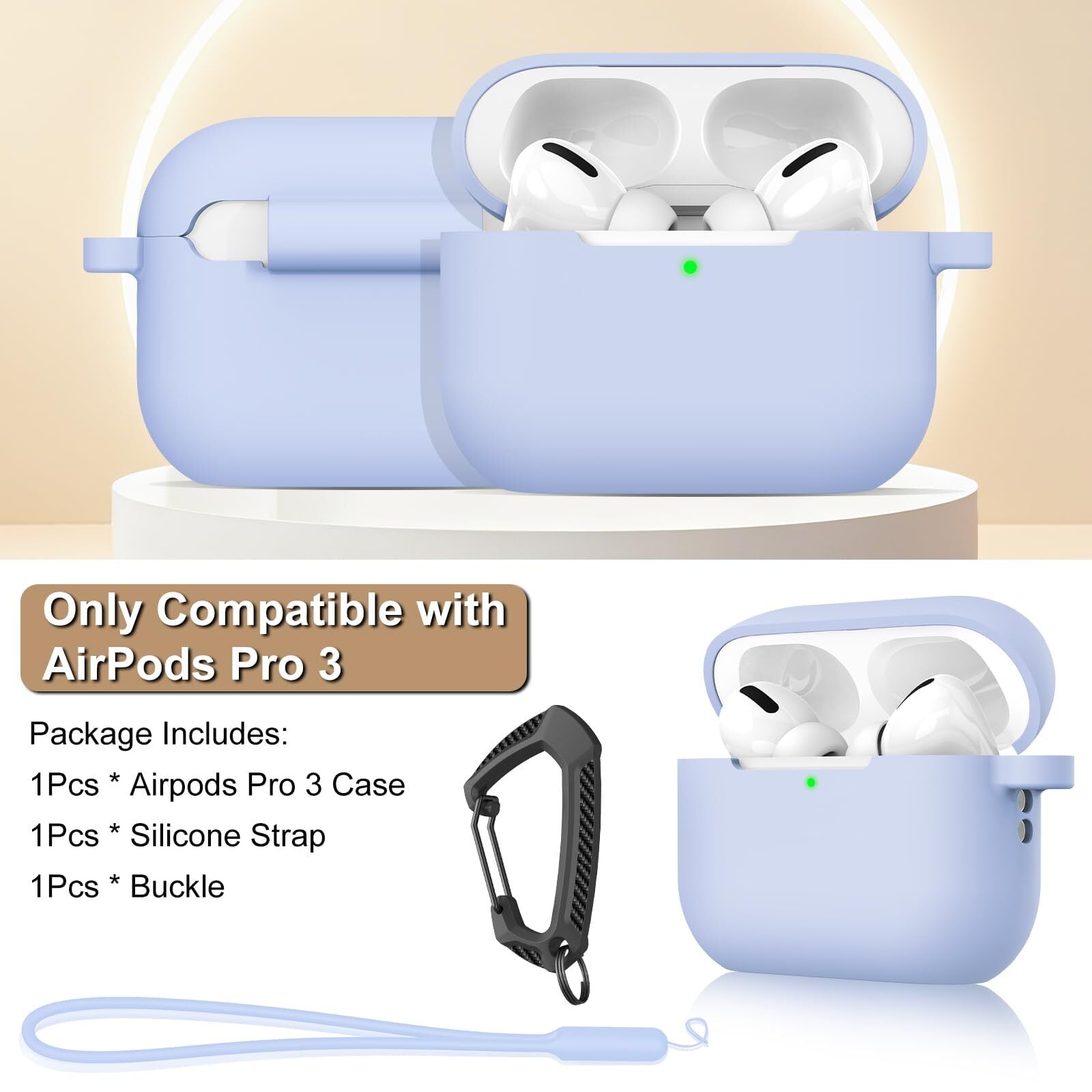 MILPROX AirPods Pro 3 ケース(2025)エアーポッズ プロ 第3世代 専用ケース シリコン ソフト 全面保護 耐衝撃 防震 防塵 落下/紛失防止 ワイヤレス充電対応 カラビナ&シリコン製ストラップ付き(ブルー)