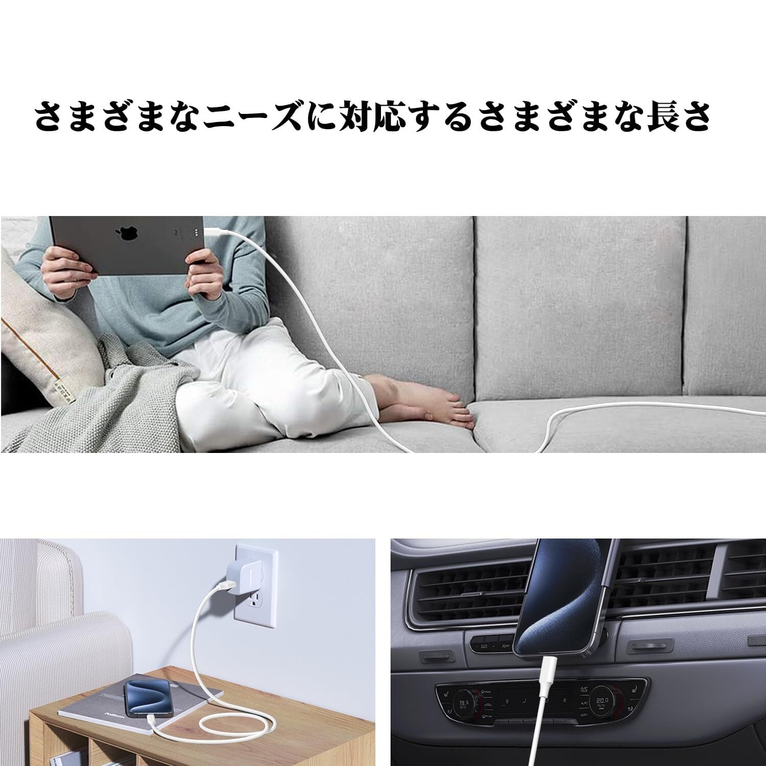 過充電、発熱と短絡を防止するプレーム VW-1を搭載し、充電機器をよりよく保護します。 より薄く、よりコンパクトなコネクタは断裂を防ぎ、簡単に挿し抜きできます。 のコネクタと外殻は耐熱性があり、腐食に強く、安定した充電を実現します。一日中頻繁に使用しても問題ありません。 対応機器:iPhone16/iPhone16 Plus/iPhone16 Pro/iPhone16 Pro Max&iPhone 15シリーズ、Sony Xperia、Samsung Galaxy、Google Pixelなどのスマートフォンはもちろん、タブレットやノートパソコンなど、さまざまなデバイスとの完全な互換性を備えています。幅広い充電ニーズに応えます。