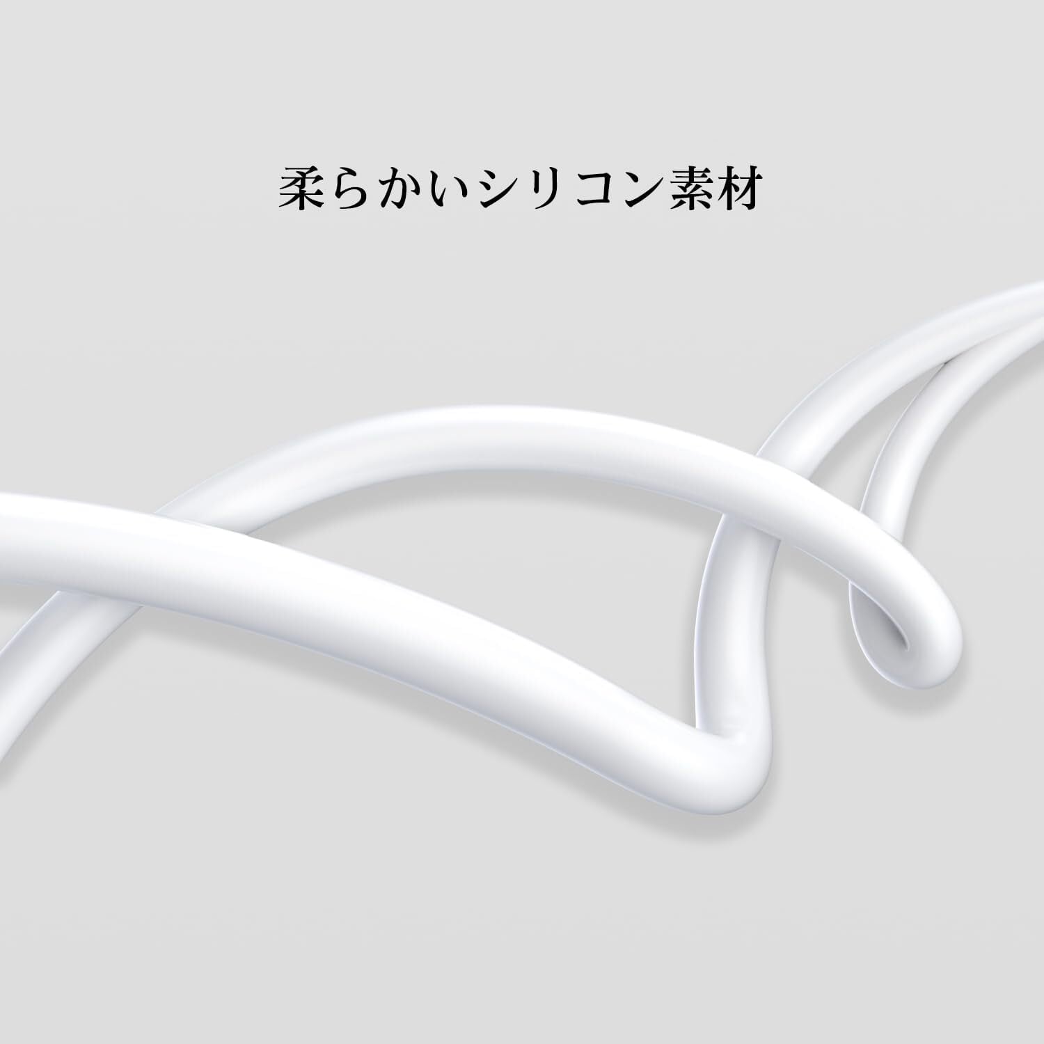 シリコン素材を使用しており、ケーブルが柔軟で絡まりにくい設計です。滑らかな触感で、持ち運びもスムーズ。耐久性も高く、長い期間お使いいただけますので、日常使いにもぴったりです。