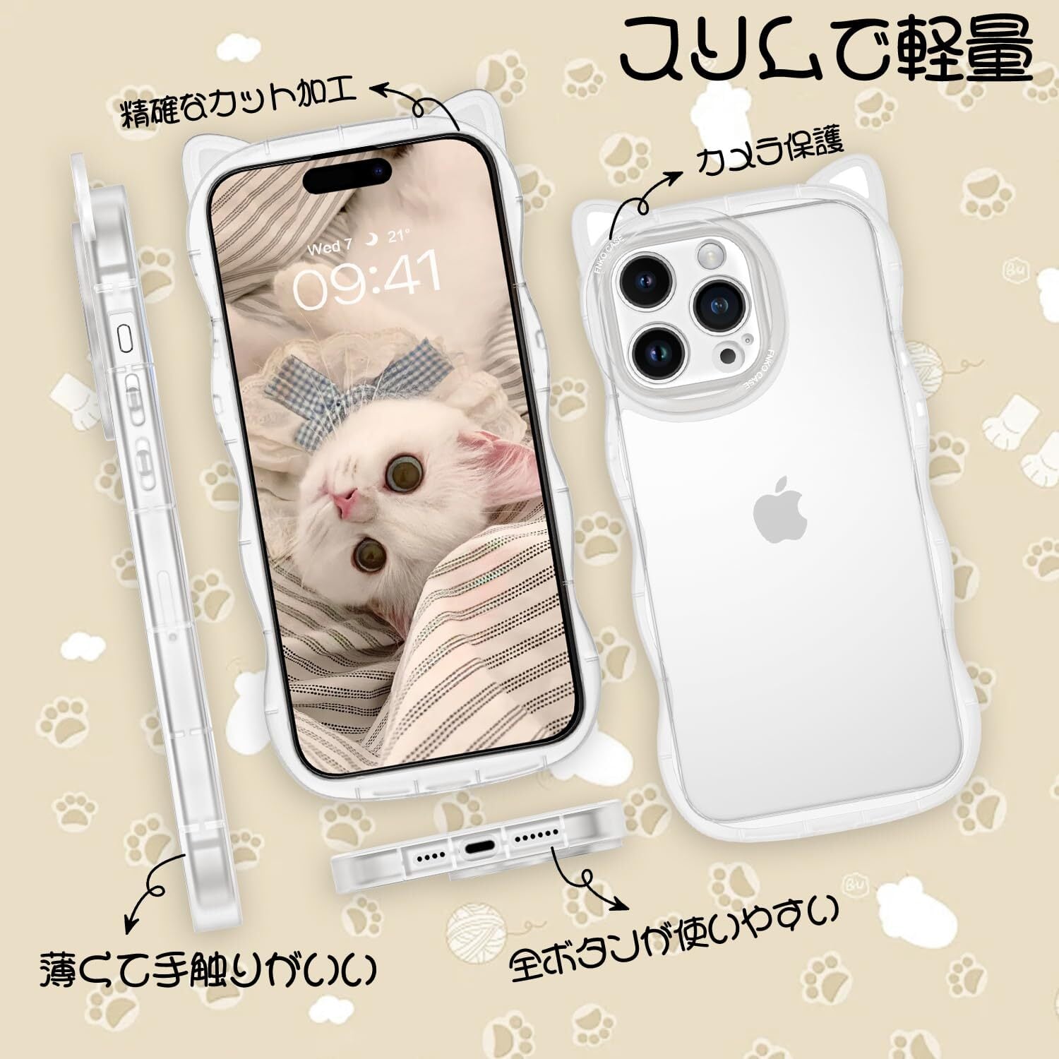 BENTOBEN iPhone 15 Pro Max ケース クリア 猫耳 うねうね かわいい 波型 ソフト 超軽量 薄型 耐衝撃 指紋防止 透明 おしゃれ ウェーブ カバー