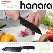 「ディンプル加工 ストーンコーティング包丁 ハナラ」はすっと切れて刃離れが抜群だからとても使いやすく、食材への臭いうつりもしないので清潔にご使用いただけます。