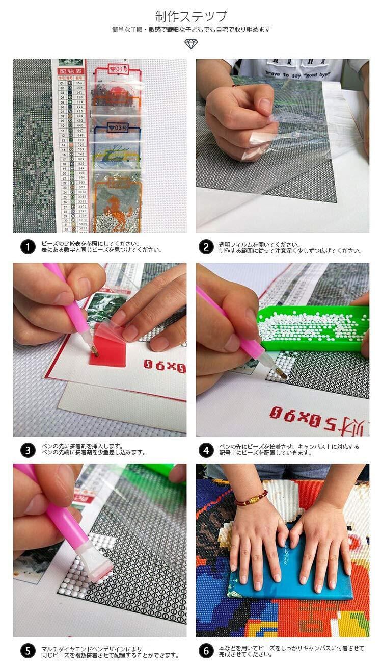 全面フルダイヤモンドビーズ 立体感の強い5D効果のダイヤモンドビーズ樹脂ラインストーンで貼り付け製作するキットです。DIYの絵画、創意工夫、ダイヤモンドビーズ樹脂で絵を描けます、独自の光沢で輝き、現在最も人気のあるDIYの絵画で鮮やかなダイヤモンドペインティングです。 ダイヤモンドビーズを使って自分で一から作り上げる一味違う絵画で達成感も抜群です。 リビングルームや寝室のインテリア、店舗、会社等の事務所などの装飾にも最適です。 刺繍よりも簡単に製作出来るので、お子様や手芸初心者様にもオススメです。