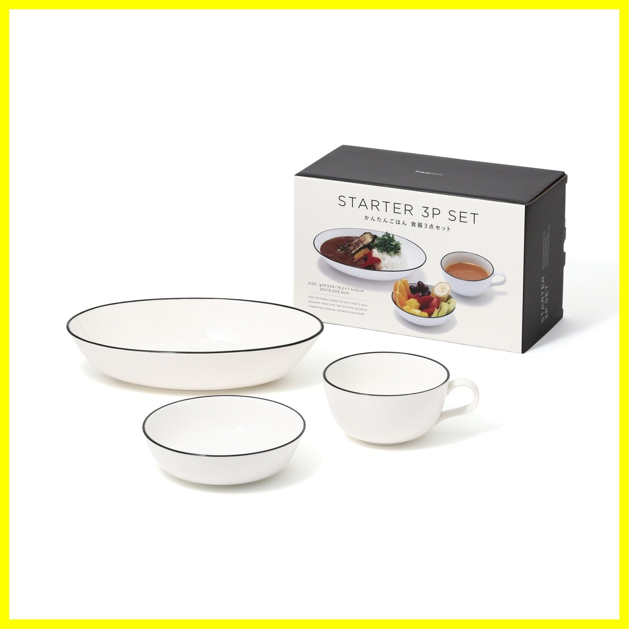 ひとり暮らしのスタートにぜひおすすめしたい、お買い得な食器セットです。 カレーやパスタなどひとり暮らしの定番メニューに使いやすいアイテムを厳選。スープカップ、オーバルボウル、ボウルS、各1点をオリジナルデザインのボックスにセットしました。 シーンを選ばず使えて、食器が増えても合わせやすいシンプルなデザイン。食卓にさりげなく彩りを添える縁取りのラインがポイントです。 電子レンジや食器洗浄機もOKだから気兼ねなく普段使いできます。