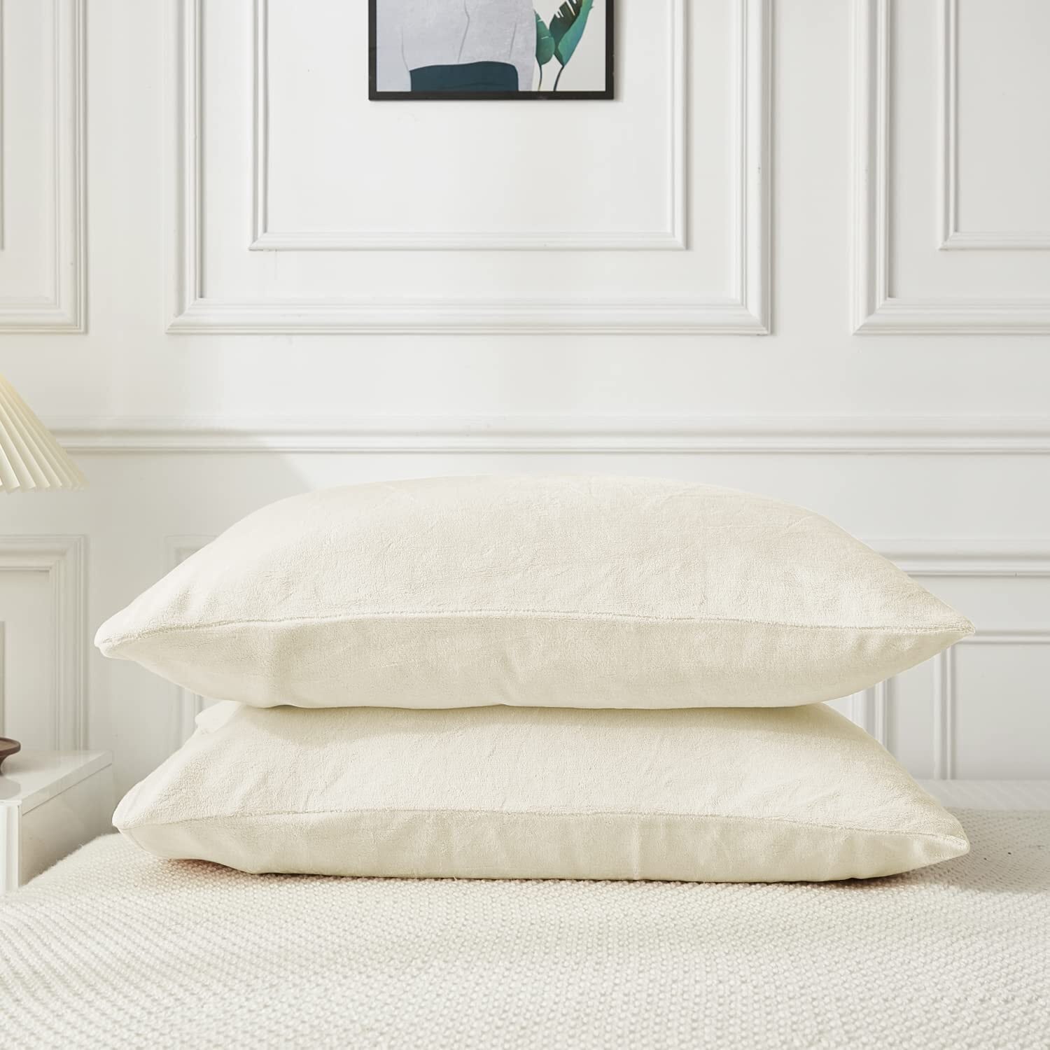 枕カバー 秋冬用 二枚セット あったか マイクロファイバー まくらカバー フランネル パイル地 ピローケース ふわふわ 柔らかく肌触り 暖かい 洗える 静電気防止加工 封筒式 アイボリー 43×63cm