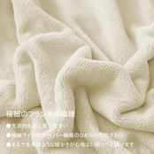 【素材】ポリエステル100%。表面はうっとりするようななめらかなフランネル素材です。密度の高い、毛束の小さい毛足が空気を取り込むので、そこに「空気の層」がうまれます。空気の層が外の冷えから守り、また、体から出る熱を包み込むので暖かさを逃しません。