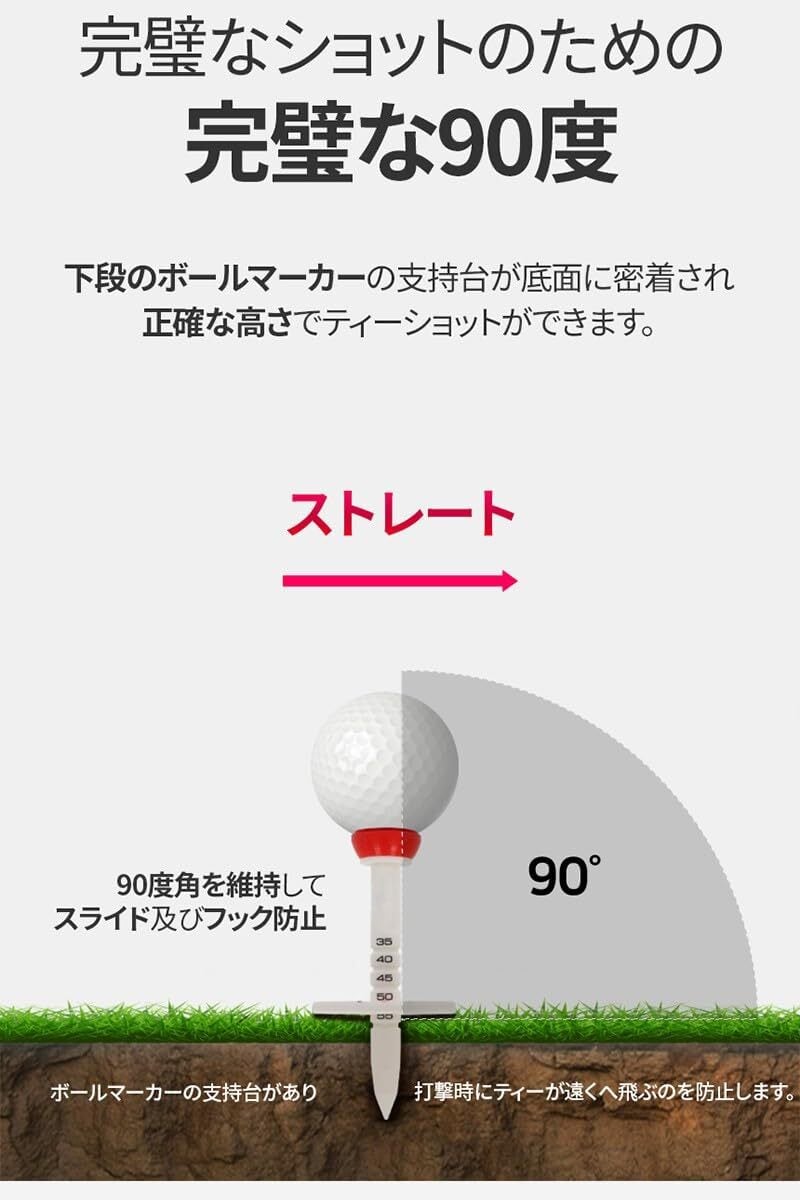 5段階の高さ調整が可能で、どんなクラブの適正ティーショットにも完璧に対応します。これにより、あなたのショットの精度が格段に向上し、ラウンドがより楽しくなります!初心者から熟練者まで、幅広いゴルファーにおすすめです。