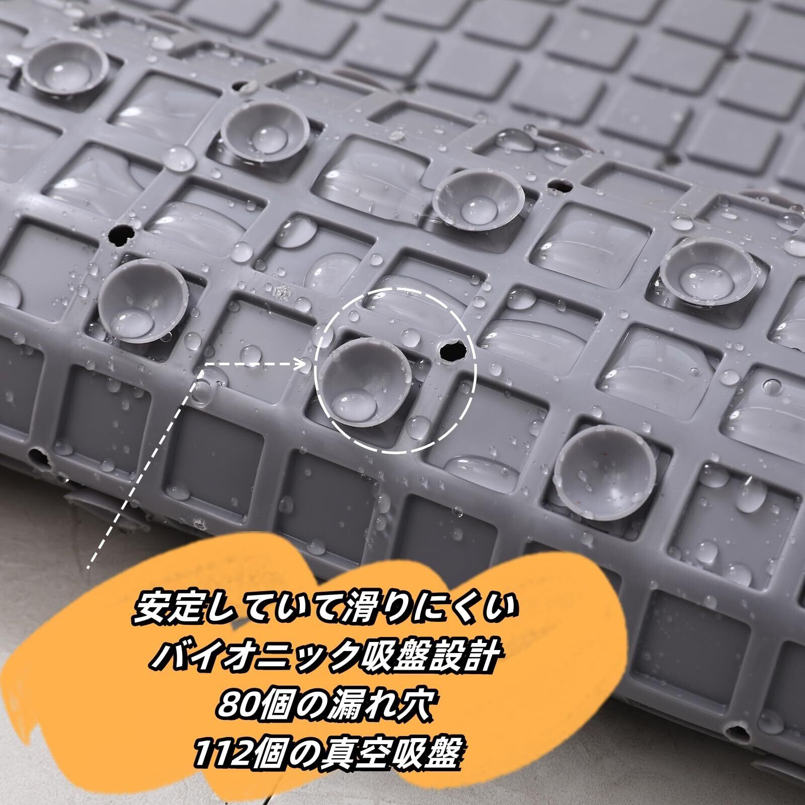 Homehot Nuhter 風呂 マット 浴室 滑り止め 浴槽内 バスタブマット お風呂バスマット 速乾 吸盤付き 転倒防止 抗菌防カビ 老化防止 浴室内多箇所使 浴室内 40X70cm (グレー) 長方形