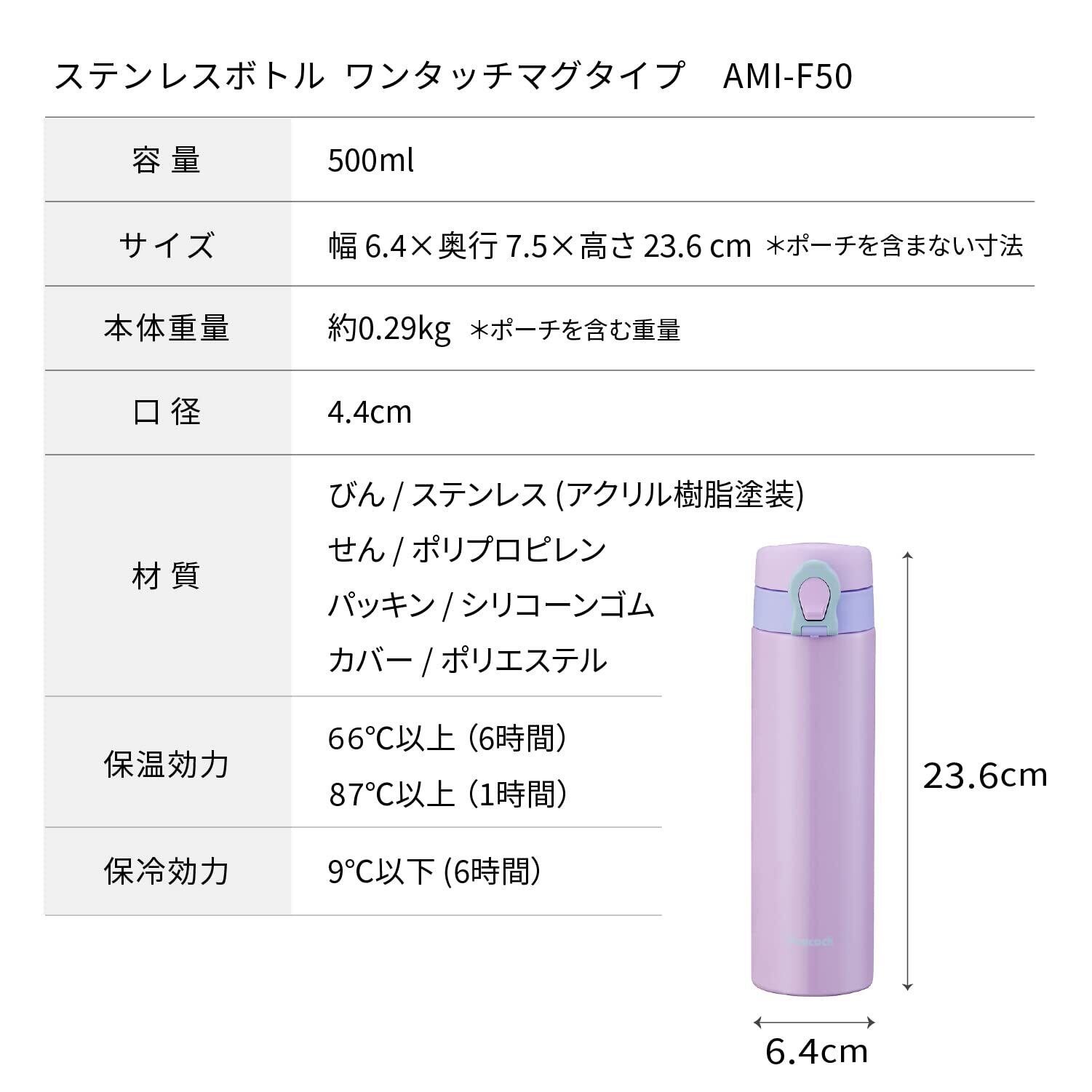 ピーコック魔法瓶工業(The-peacock) ピーコック 水筒 マグ ボトル 500ml 保温 保冷 キッズ 女の子 ワンタッチ マグボトル ステンレス 魔法瓶 0.5L ケース カバー付き パープル AMI-F50 AV